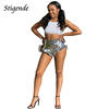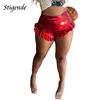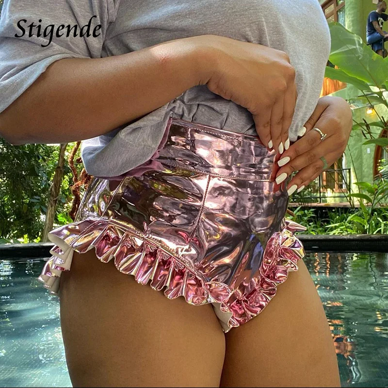 Stigende Women Sexy Glitter Ruched Frill Shorts Party Night Club Wear Fashion Shiny Shorts Summer Shining Bling Stacked Shorts