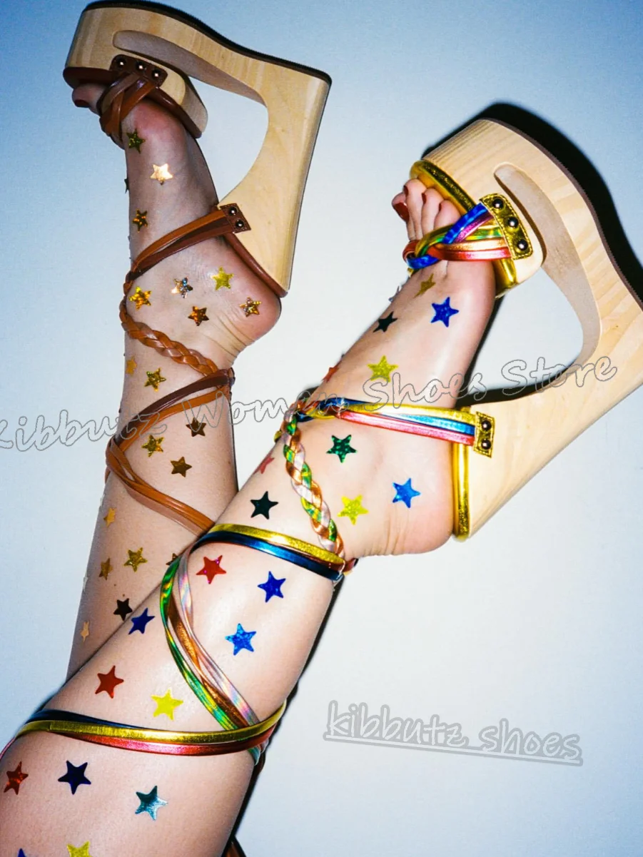 Strange Heels Sandals Platform Round Toe Lace-Up Mixed Color Novelty Fashion Elegant Comfortable Sexy Spicy Girls Shoes Newest