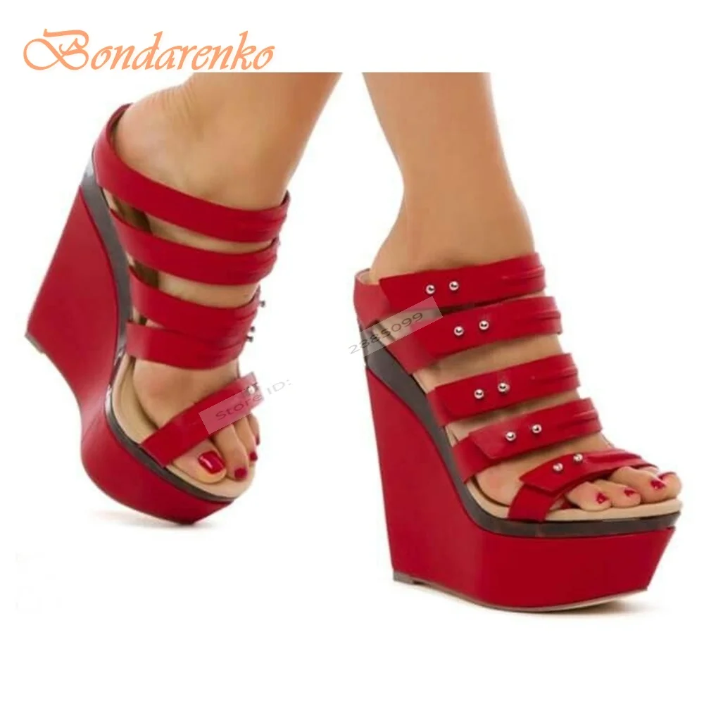 Straps Hollow Cuts Sandals Open Toe Solid Wedges Platform Sexy Sandals Summer Ladies Shoes Designer Party Casual Slip On Big New