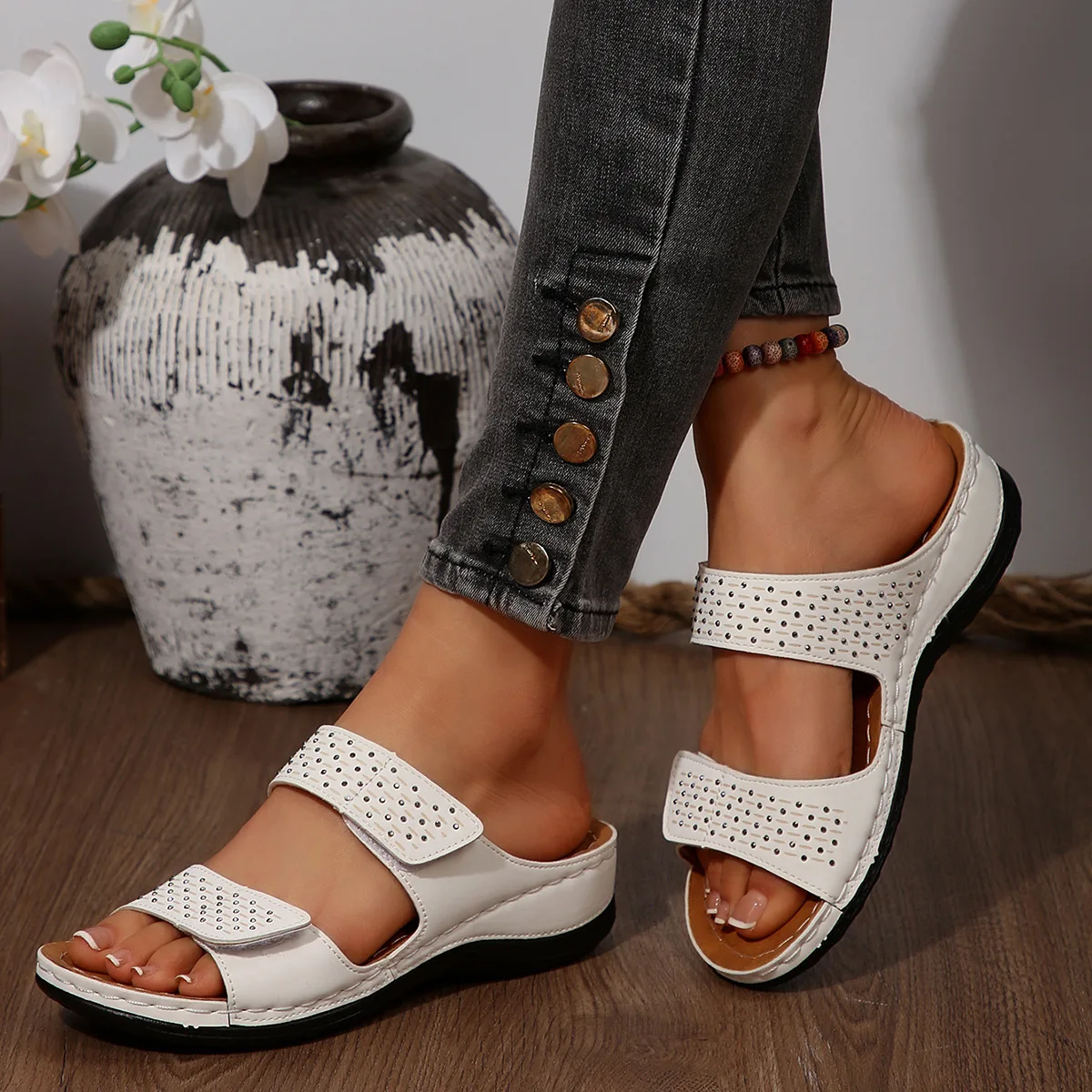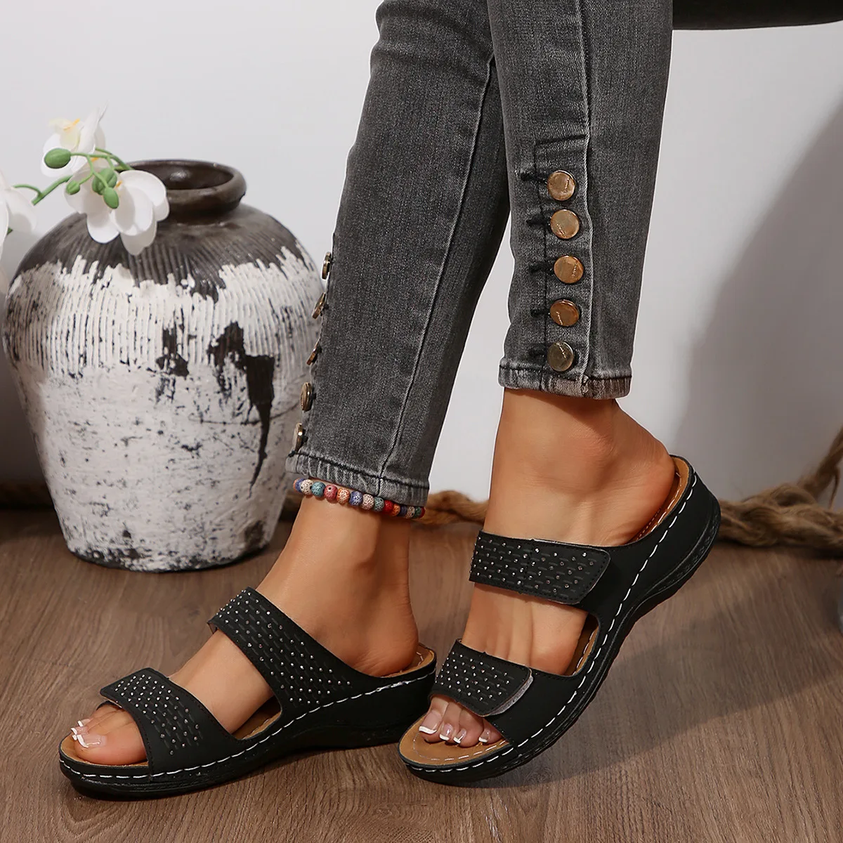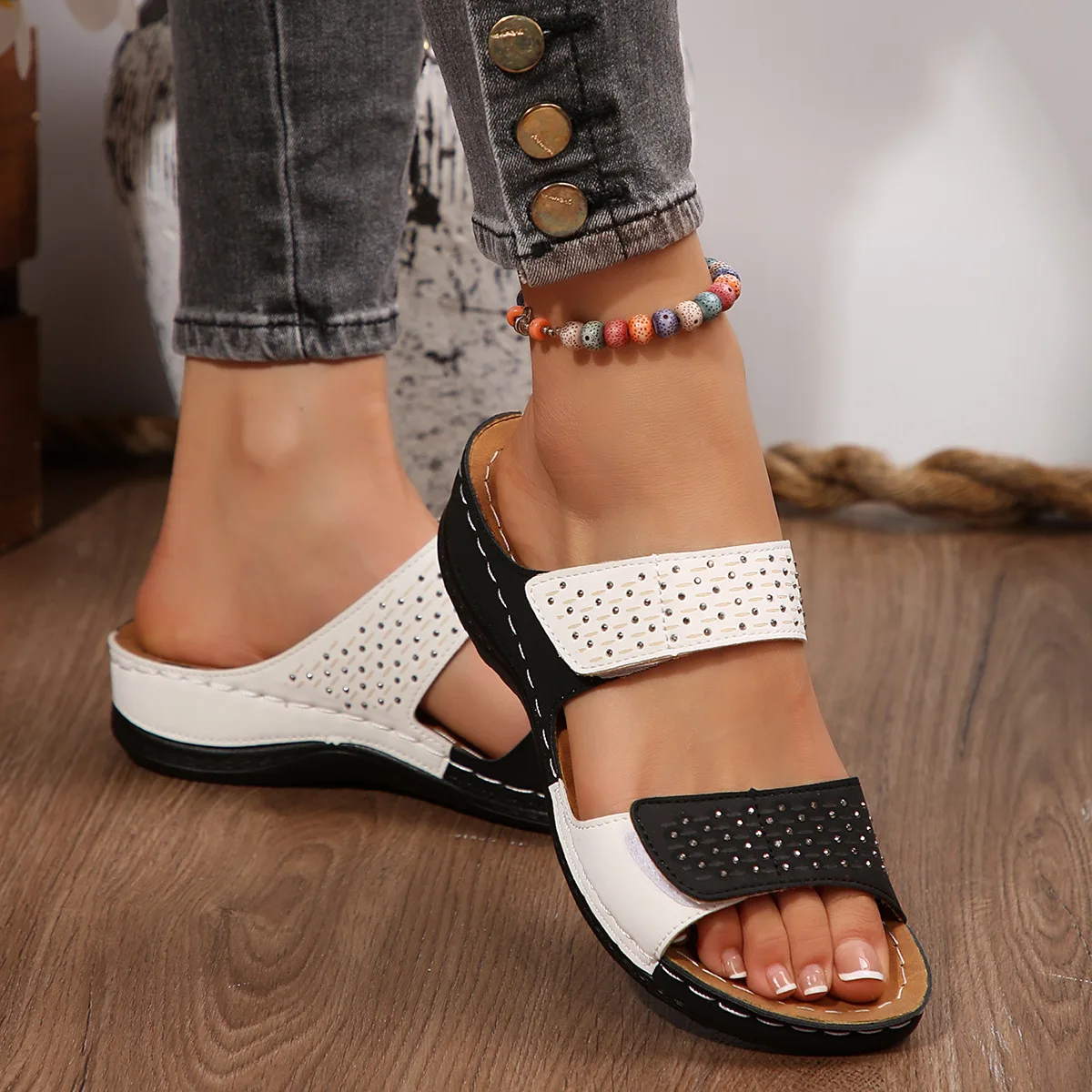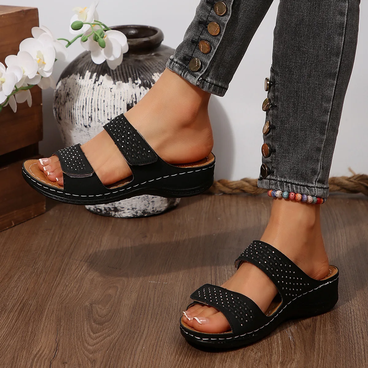 Summer 2025 new hollowed-out European and American sandals with wedge heels, plus-size women’s color-blocked slippers