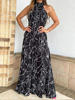 Summer European and American women’s wear with elegant waist-cinching sash-tie sleeveless off-shoulder long pants printed jumps