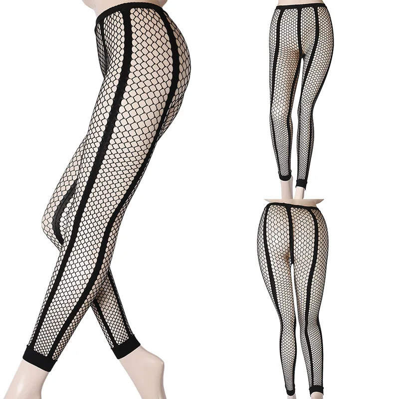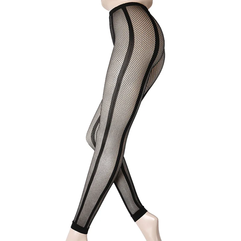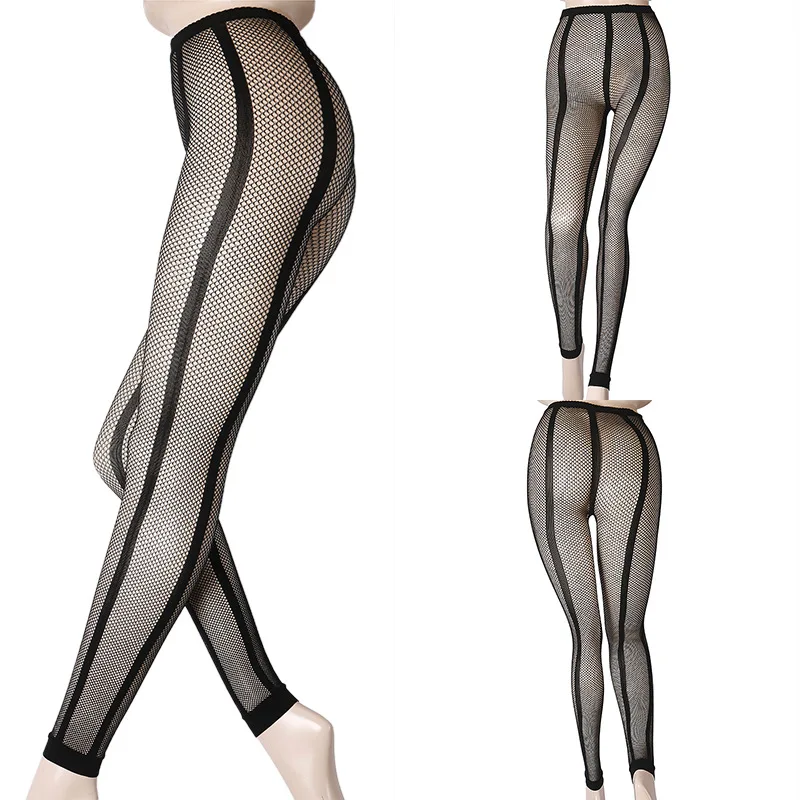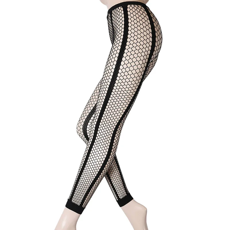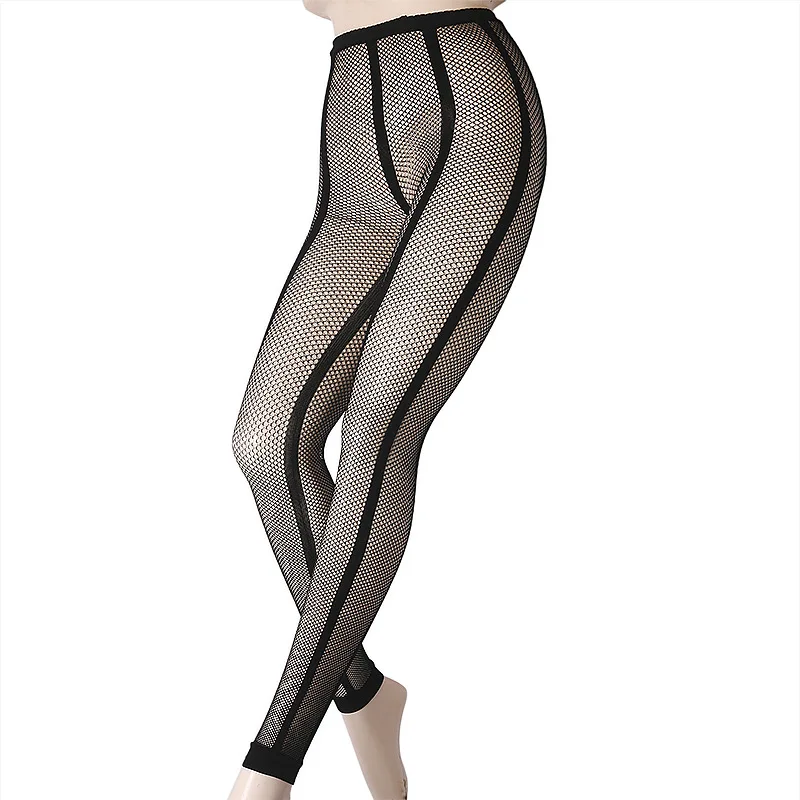 Summer Fashion Sexy Women’s Black Stripe Fishnet Leggings Footless Tights Can Be Worn with Distressed Jeans or Shorts