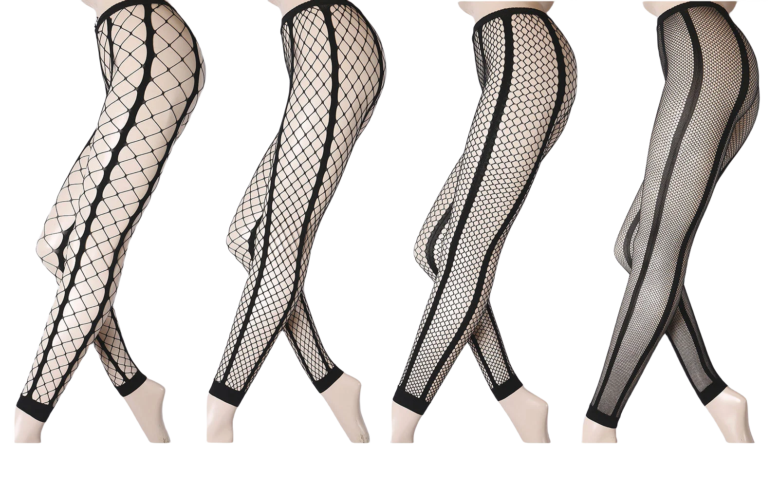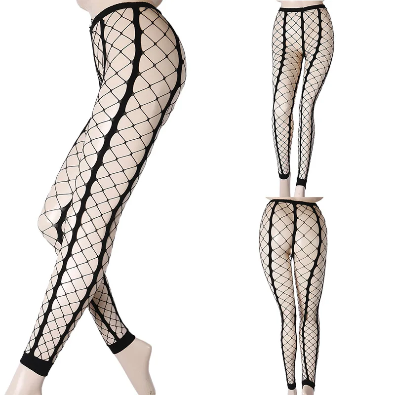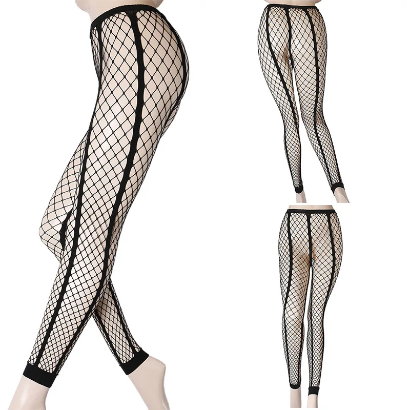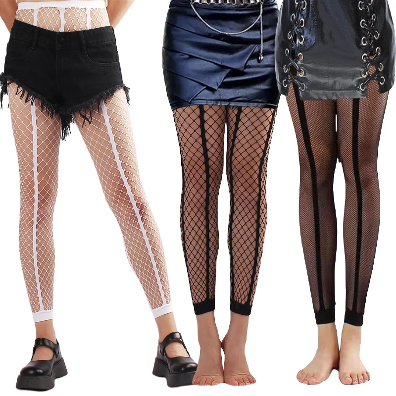 Summer Fashion Sexy Women’s Black Stripe Fishnet Leggings Footless Tights Can Be Worn with Distressed Jeans or Shorts