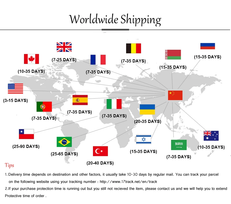 Packages from our warehouse in China will be shipped by ePacket or EMS depending on the weight and size of the product. Packages shipped from our US warehouse are shipped through USPS.