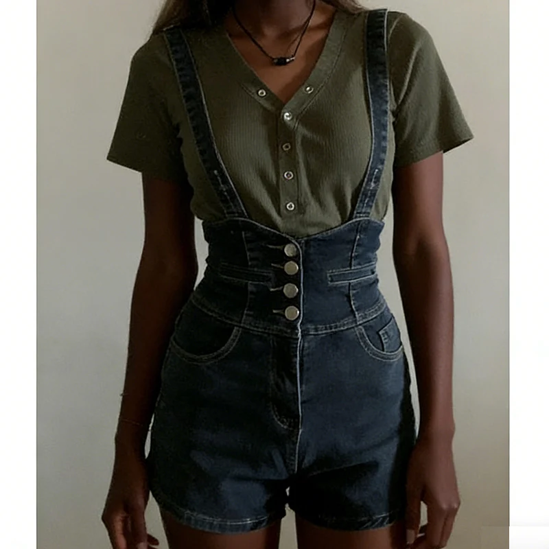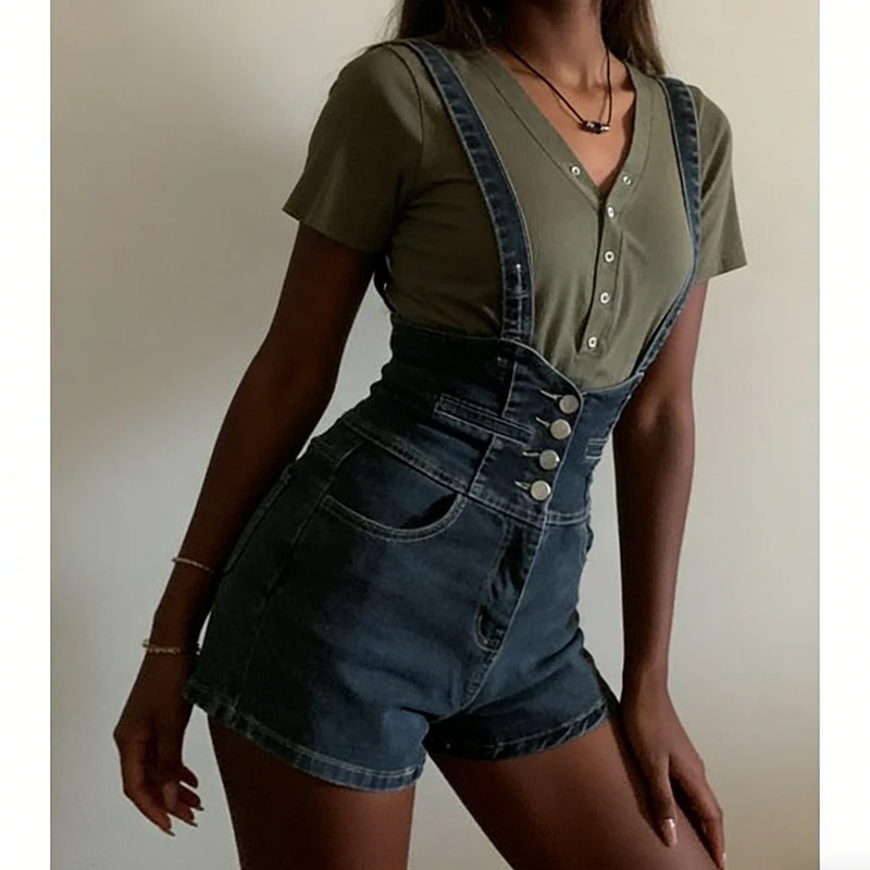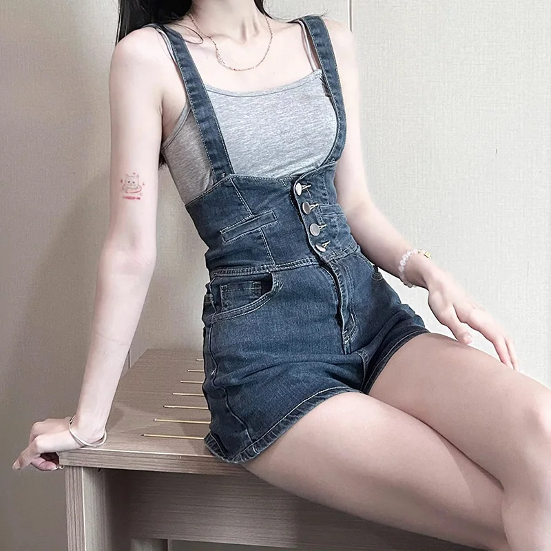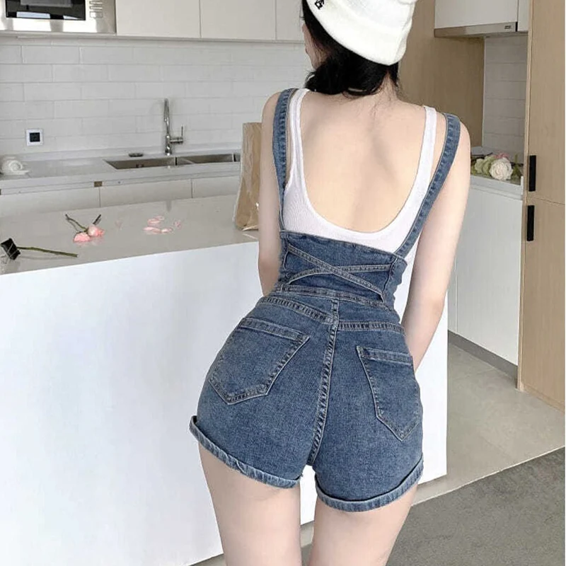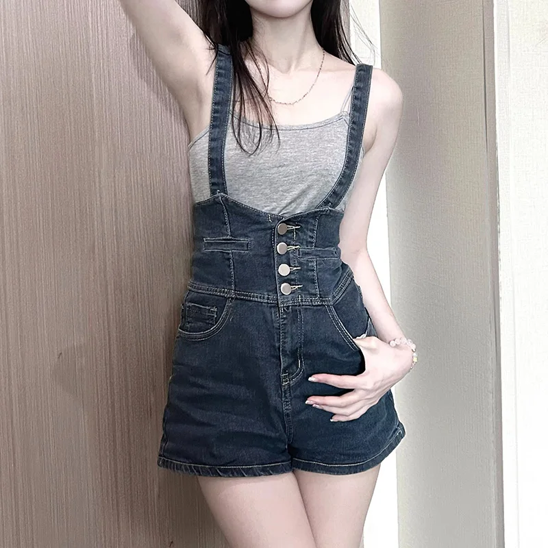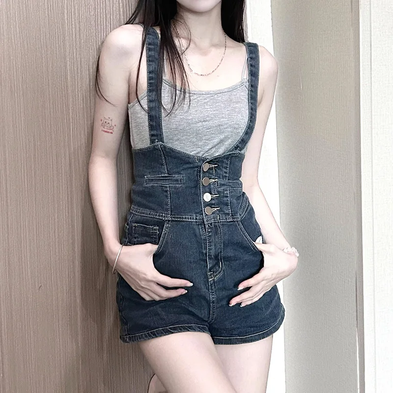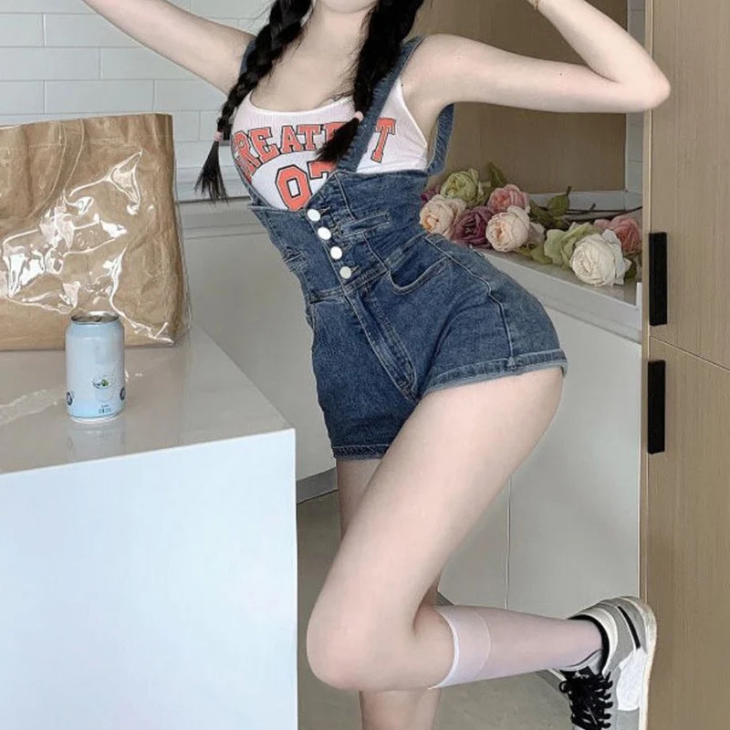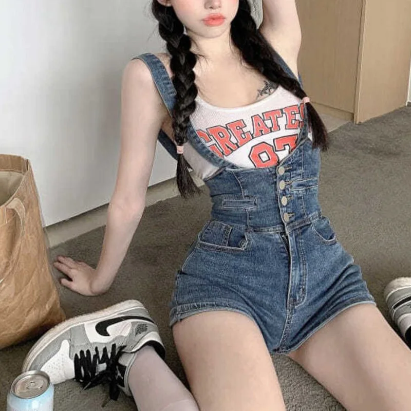 Summer Female Chic Thin High Waist Jeans Hot Sale Girls Denim Overalls Shorts Lady Retro Fashion Solid Casual Pants