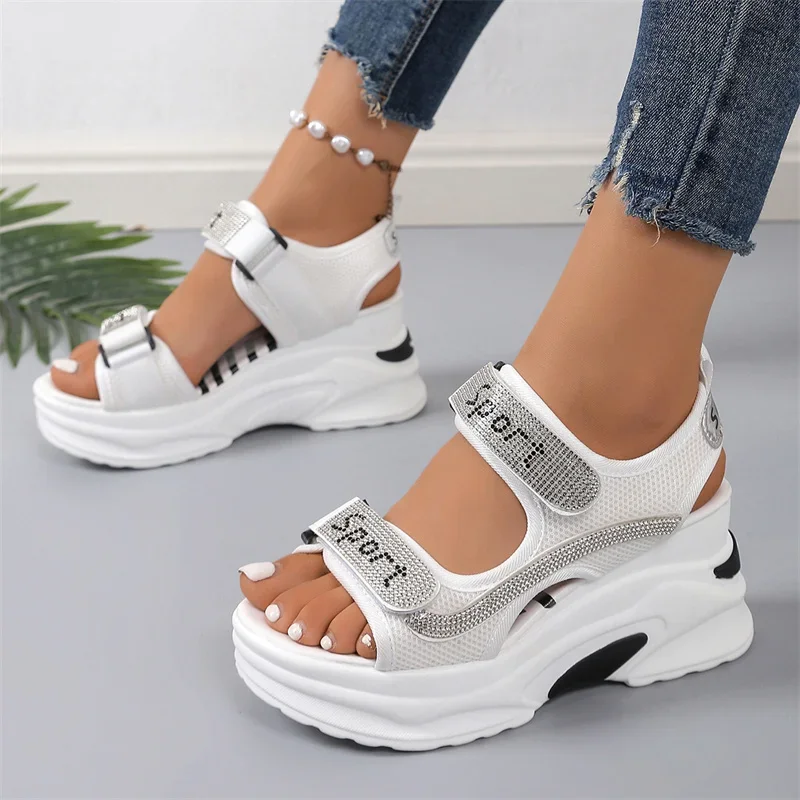 Summer Women’s Sexy Roman Crystal Thick Sole Casual New Walking Shoes Everyday Soft Breathable Fashionable Sports Sandals