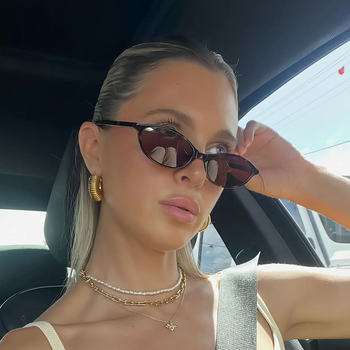 New Retro Oval Cat Eye Sunglasses for Women Y2k Trendy Small Narrow Sunnies 90s Designer Sun Glasses