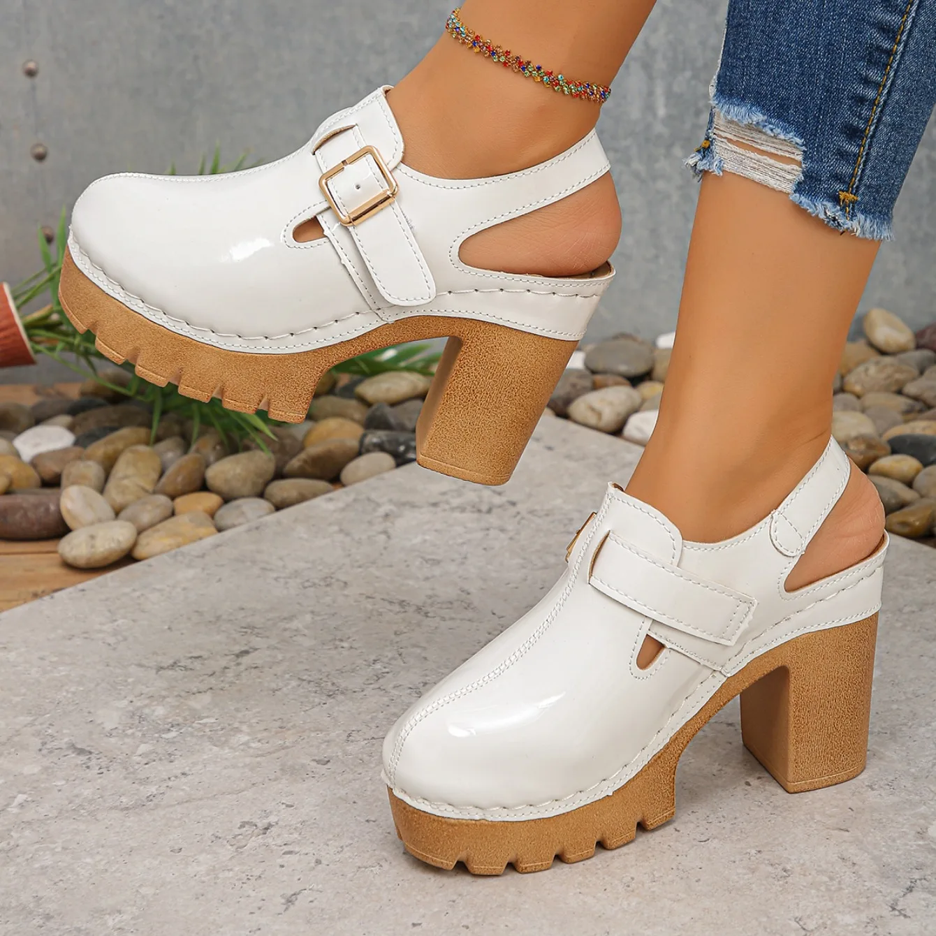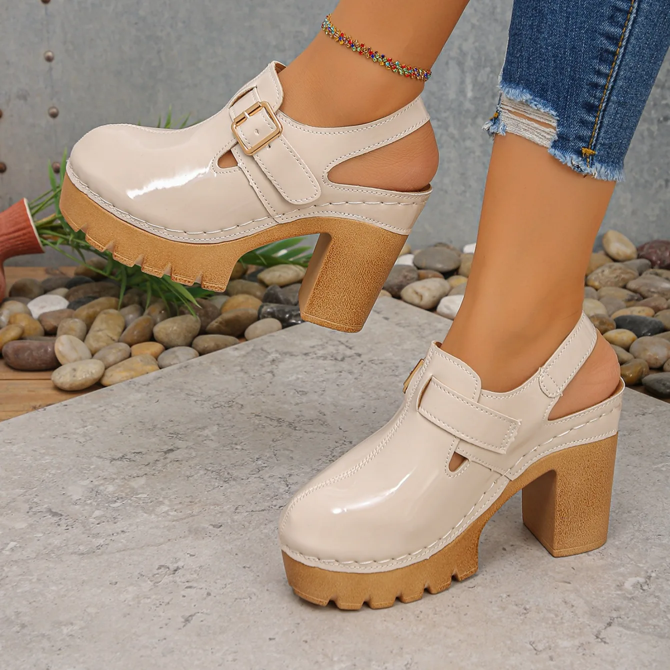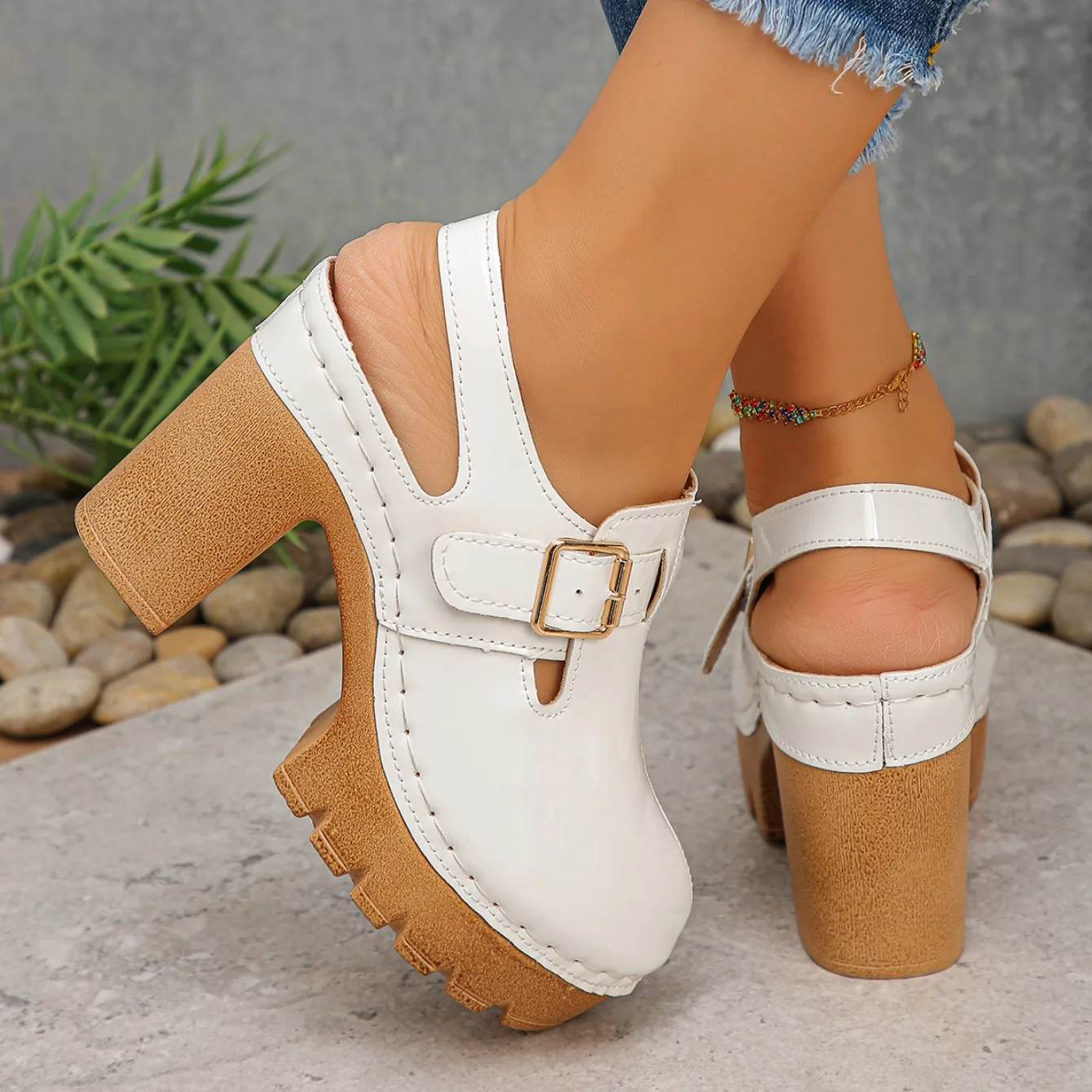 Super High Heels Sandals for Women Round Toe 2025 Summer Chunky Heel Comfortable Shoes Closed Toe Sophisticated Women’s Shoes