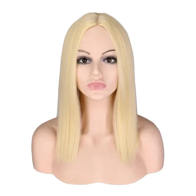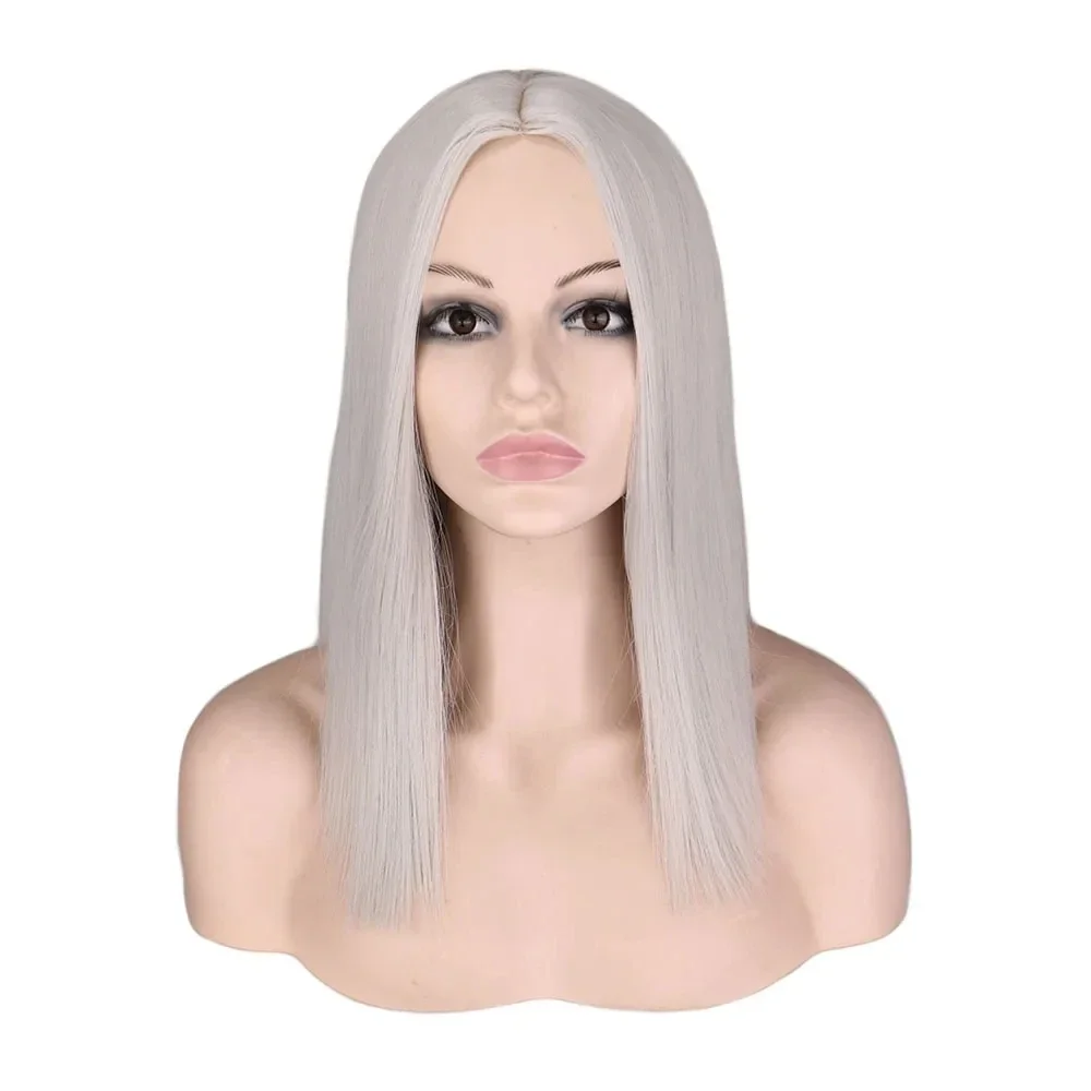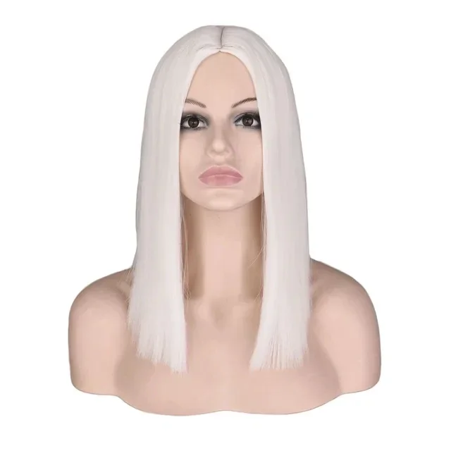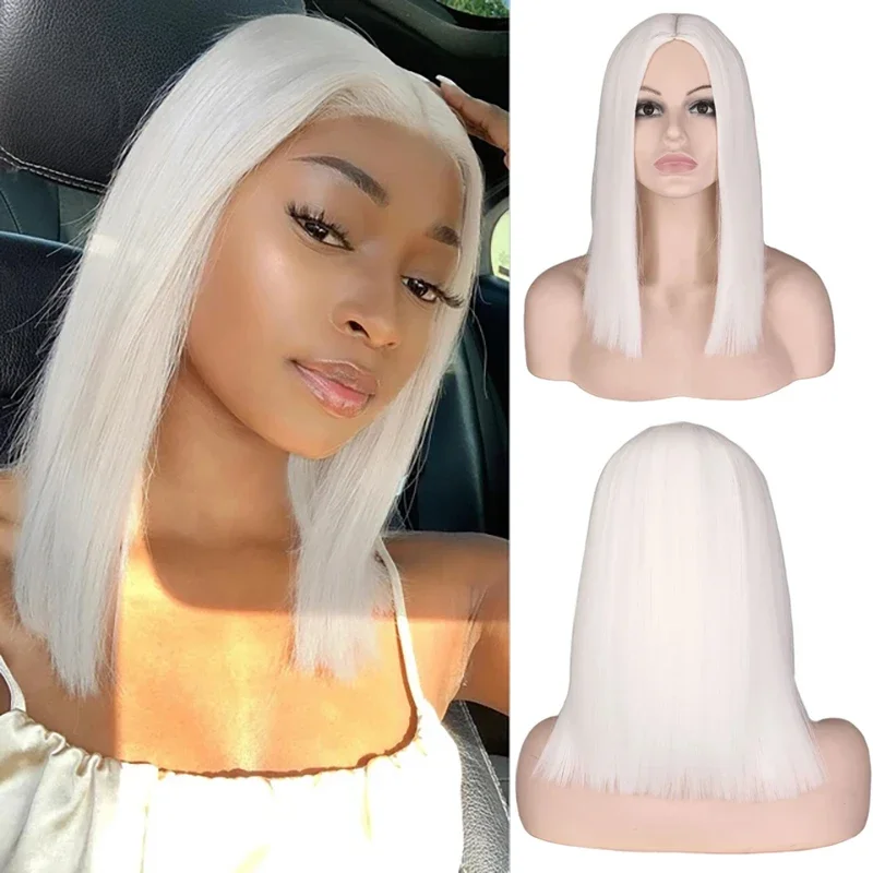 SuQ Synthetic Wigs Short Blonde White Wig Straight Bob Wigs for Women Middle Part High Temperature Fibre Natural Women Wigs