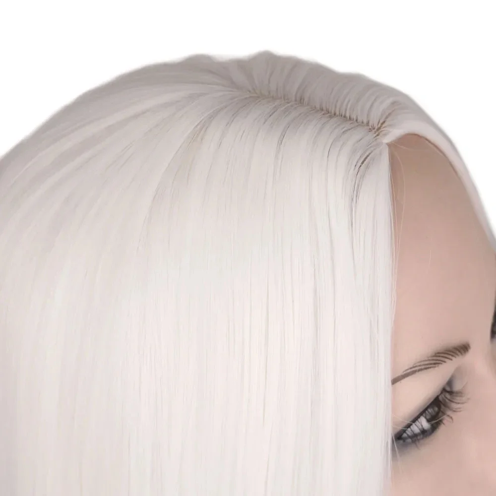 SuQ Synthetic Wigs Short Blonde White Wig Straight Bob Wigs for Women Middle Part High Temperature Fibre Natural Women Wigs