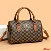 This series of handbags features a classic cylindrical shape with the iconic “M” pattern, showcasing a unique style. The bag is made of high – quality material, with leather handles and straps that offer a great texture, providing multiple carrying options to easily fit different scenarios. Metal fasteners and a circular “M” logo are delicately adorned, adding a touch of luxury. The first model, in black – gray color, is low – key and steady, suitable for those who love a simple style. The second model, with brown – gray matching, exudes a warm and stylish charm, perfect for daily commuting or casual outings. The third model, in white – gray combination, is fresh and elegant, adding brilliance to the overall look, favored by fashion – conscious people who like bright tones. The interior space is well – organized, capable of holding daily items like mobile phones, wallets, and cosmetics, ensuring a convenient trip. Whether for shopping, working, or dating, this handbag series can be a fashion companion, enhancing overall temperament and showing personal charm.