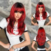 Synthetic Long Wave Red Wigs For Women With Bangs Natural Dark Roots High Quality Heat Resistant Fiber Wig Hair Tail Dyed Black