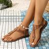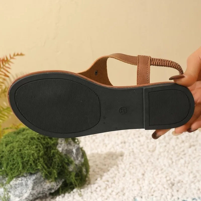 Thong Sandals for Women 2026 Summer Simple Fashionable Flats Elastic Band Outdoor Beach Shoes Casual Ladies Rome Sandals