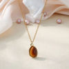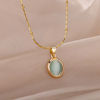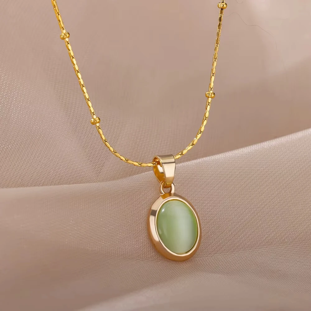 Trendy Oval Colorful Stone Necklace For Women Stainless Steel Gold Color Green Opal Stone Pendant Necklace Aesthetic Jewelry Gif