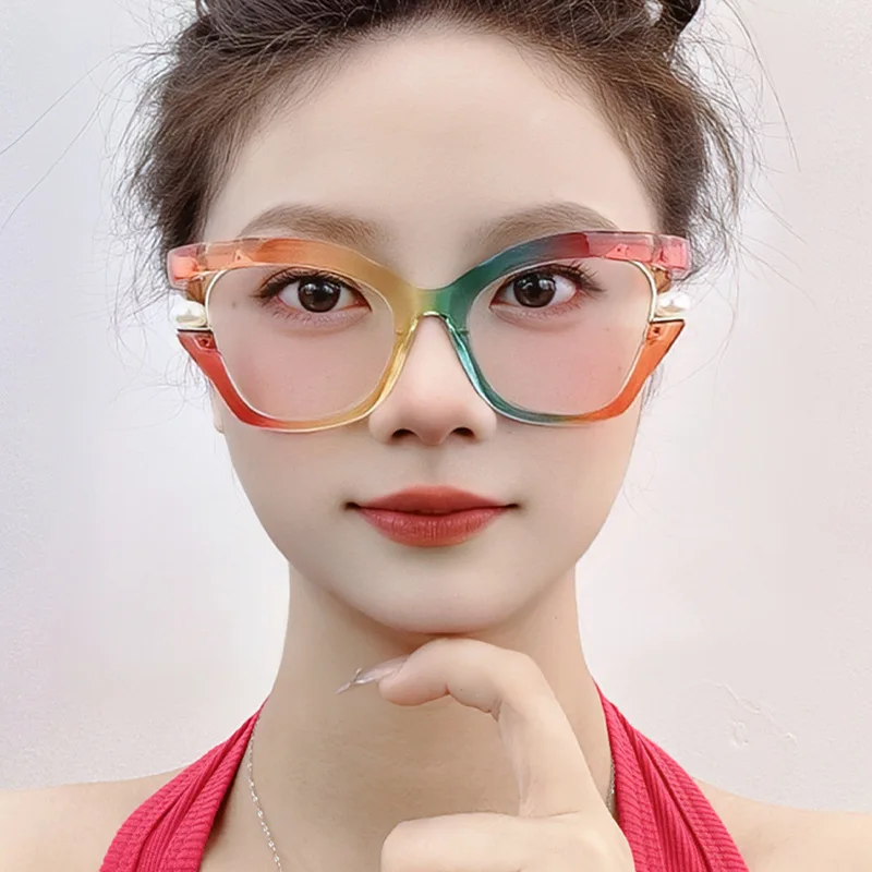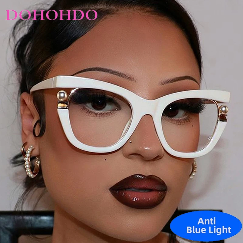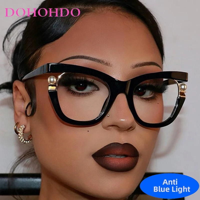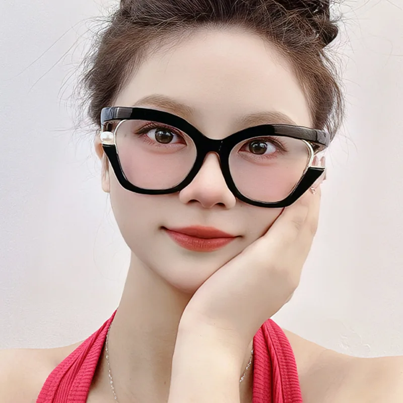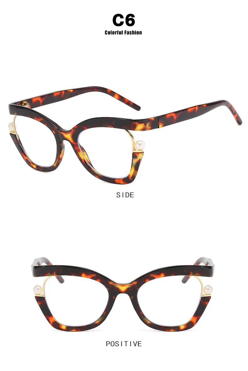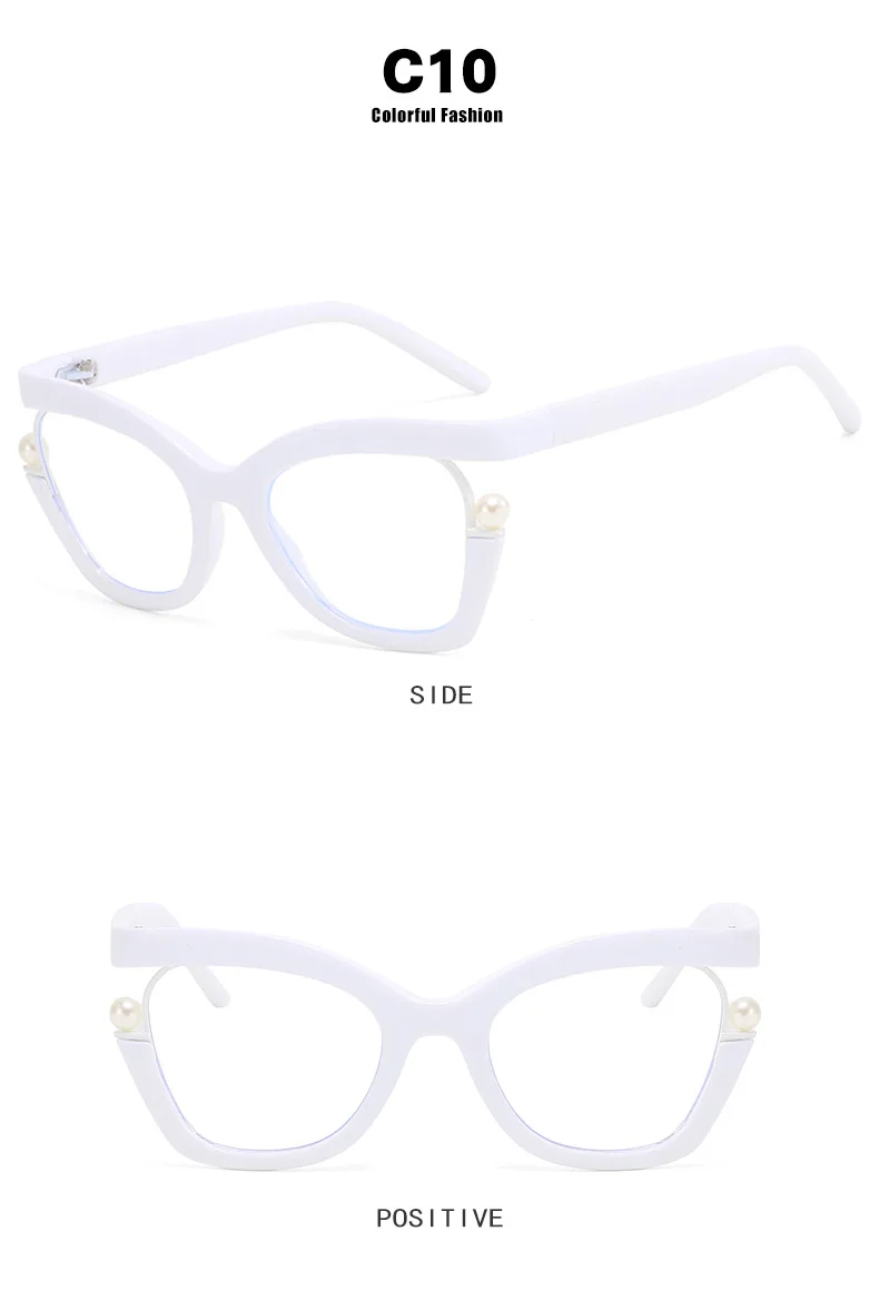 Vintage Brand Designer Pearl Cat Eye Optical Glasses Men Women Trendy Luxury Computer Anti-Blue Light Protection Spectacle Очки