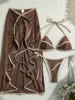 Vintage White Coffee Patchwork Bikini Set Women Ruffles Pleate Mesh Long Skirt 3 Piece Swimsuit 2025 Beach Bathing Suit Swimwear