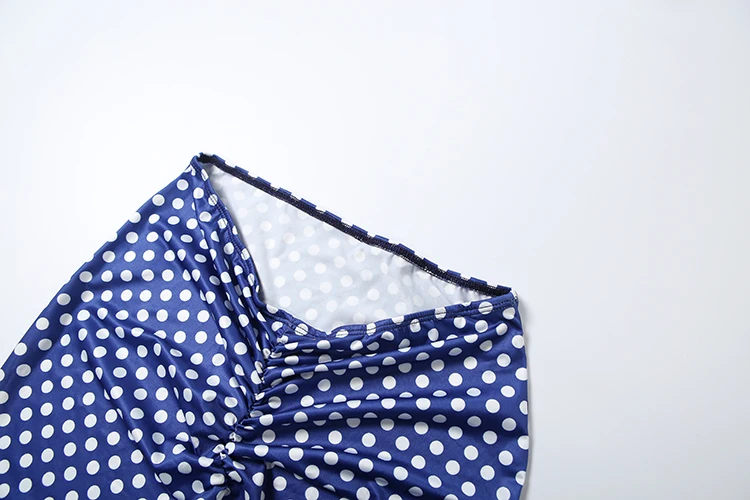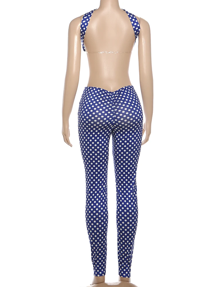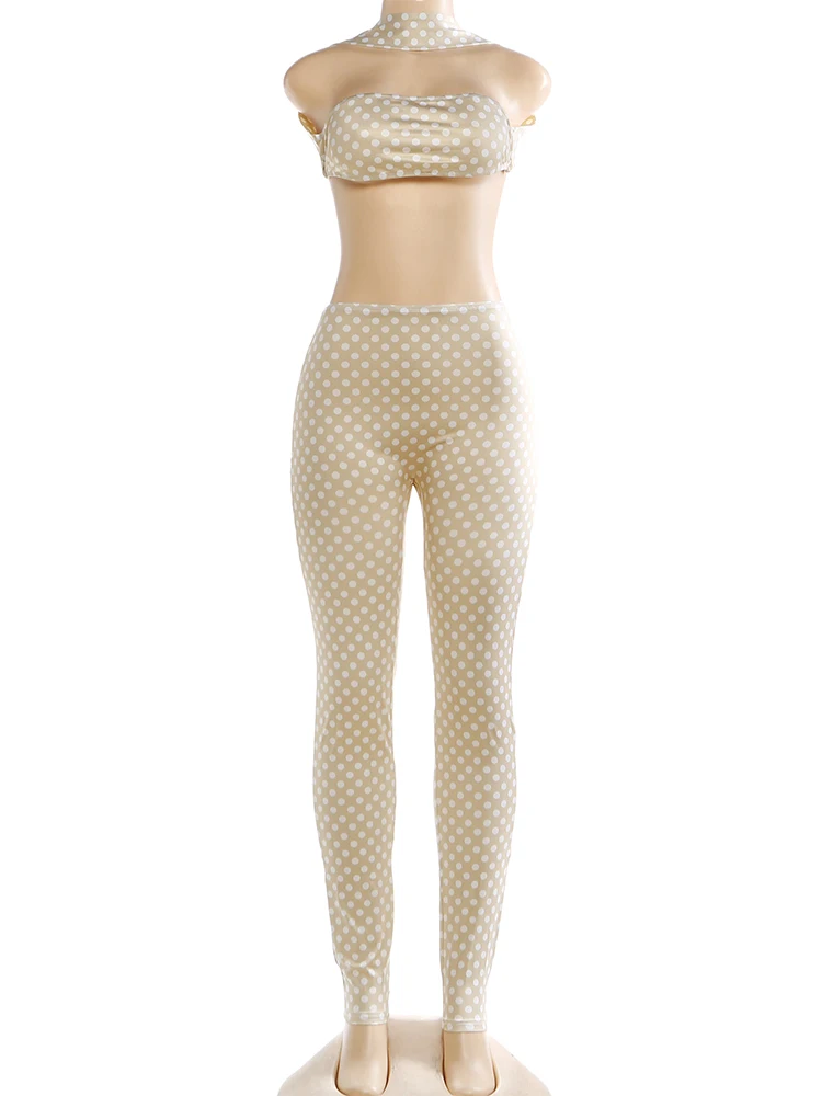 Weird Puss Hottie Polka Dot 2-Piece Set Women Halter Chest Wrapped Backless Top+Ruched Peach Hip Pants Stretch Skinny Clubwear