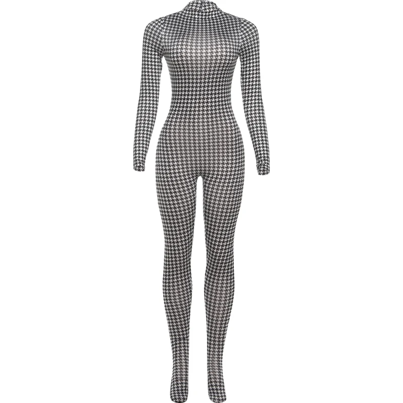 Weird Puss Sexy Snake Print Foot Jumpsuit Women Zip Spring Trend O-Neck Full Sleeve Stretch Street Clubwear Workout Overalls