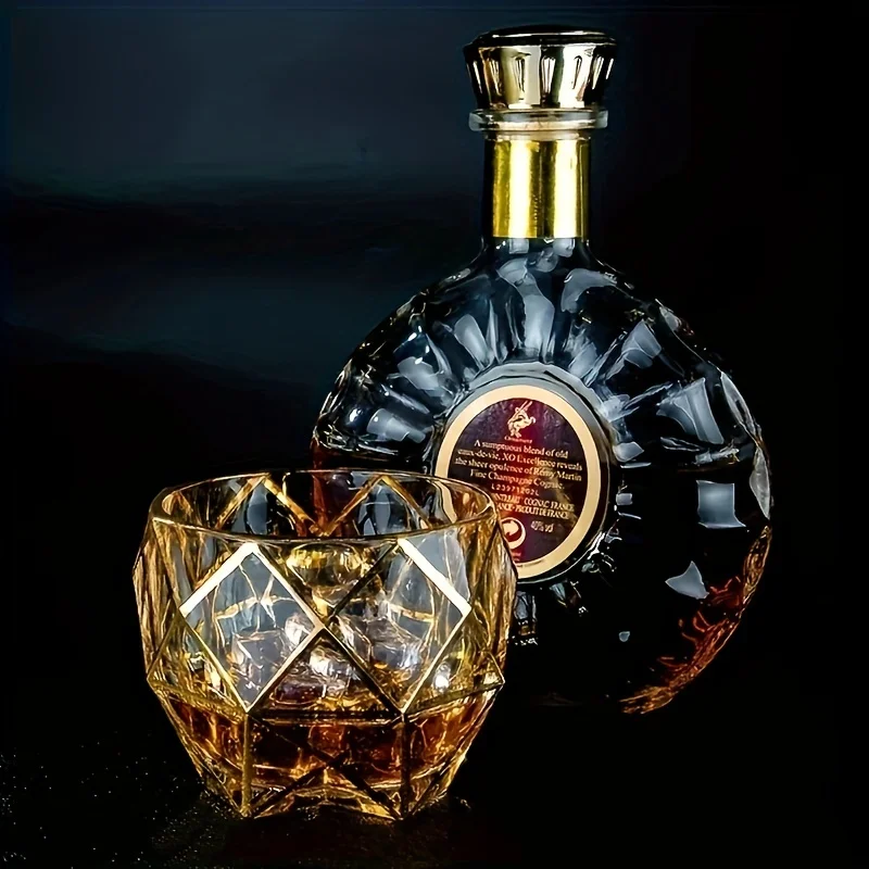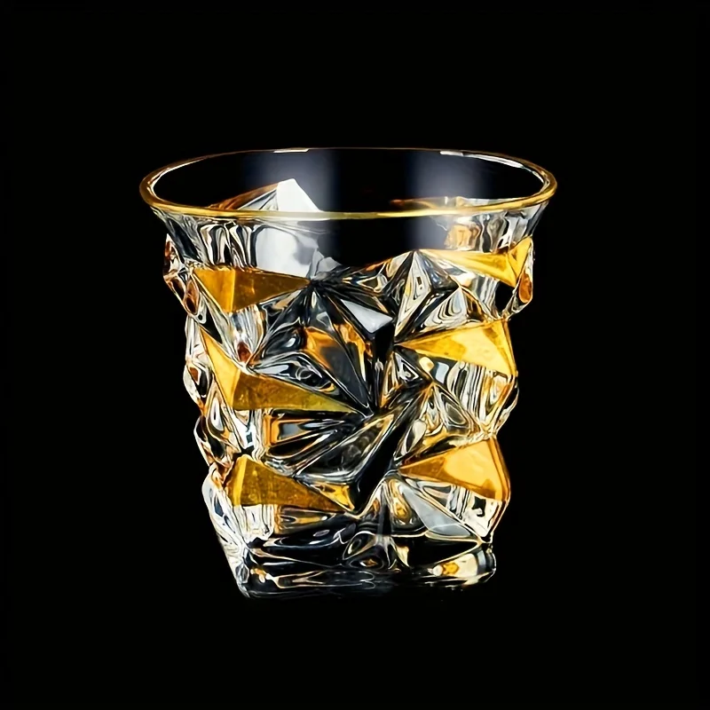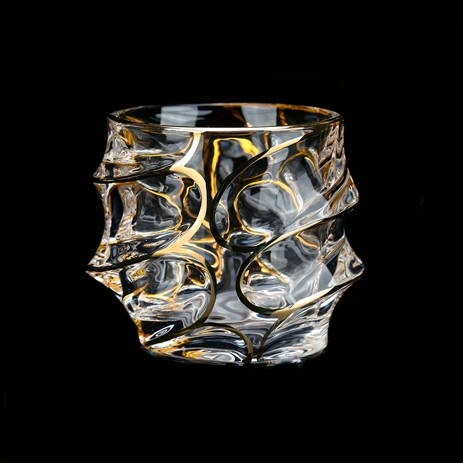 Whiskey Glass Tumbler Golden Line Wine Whisky Glasses Golden Painted Crystal Barware Multi-Functional Beer Cocktail Cup