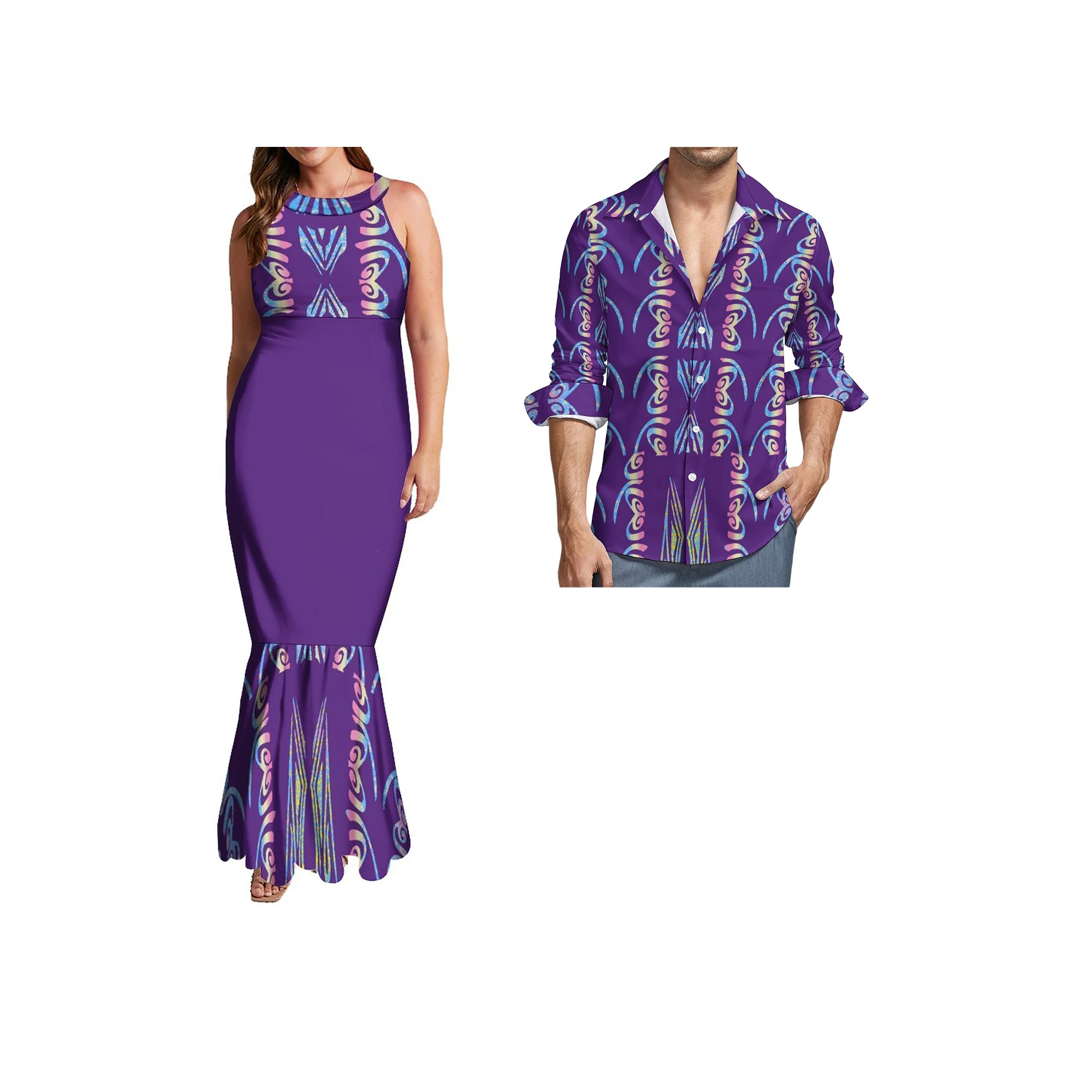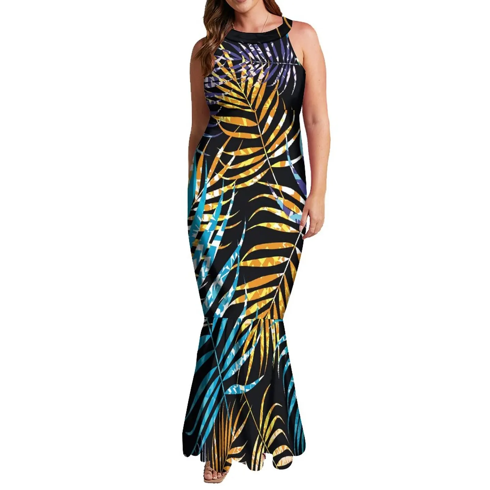 Wholesale Custom Halter Sleeveless Mermaid Dresses Polynesian Tribal Fishtail Evening Dresses With Back Neck Tie
