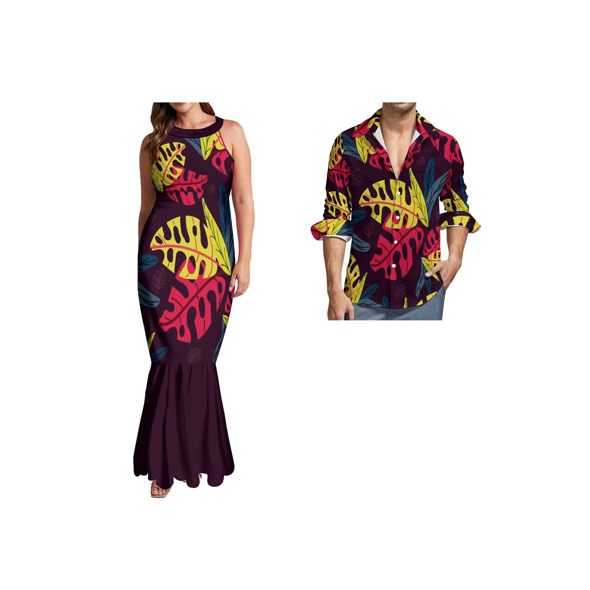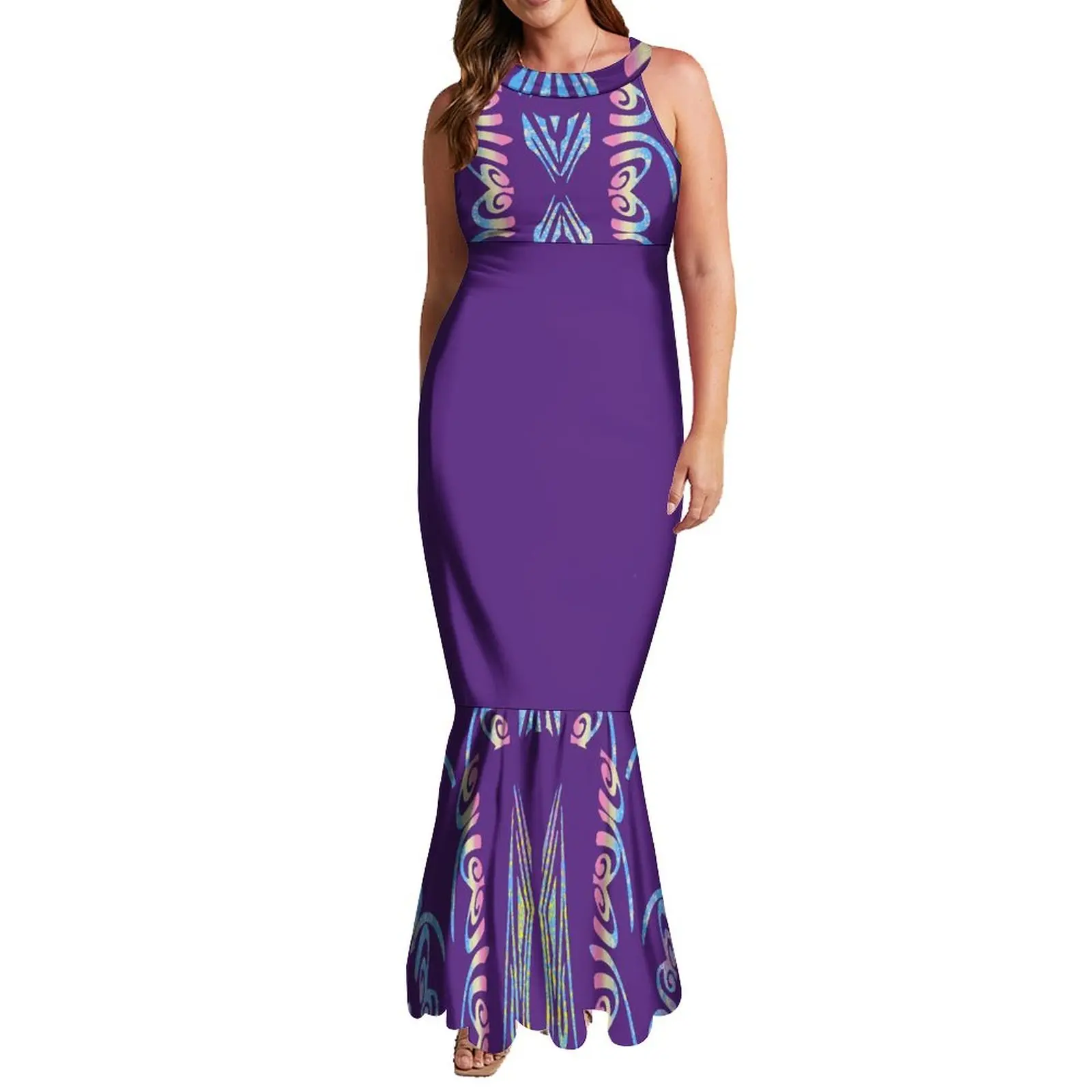 Wholesale Custom Halter Sleeveless Mermaid Dresses Polynesian Tribal Fishtail Evening Dresses With Back Neck Tie