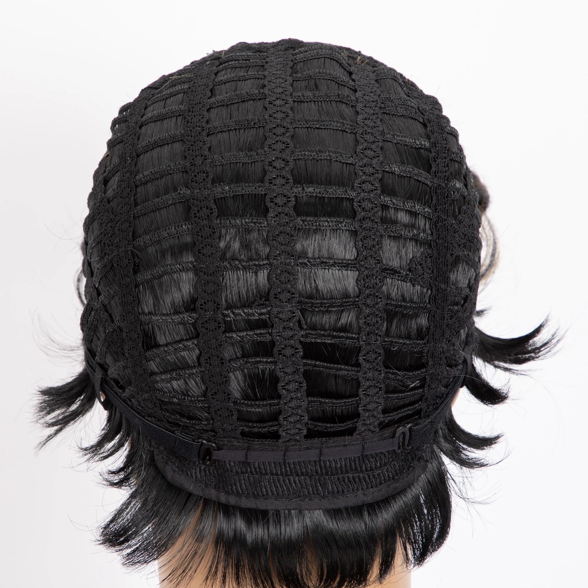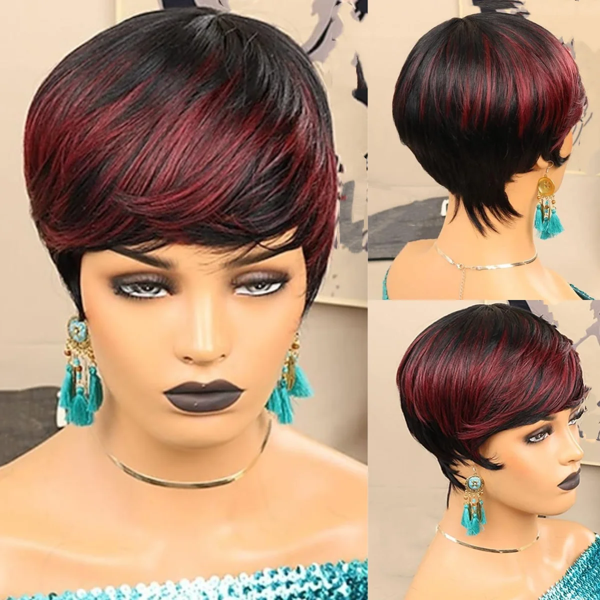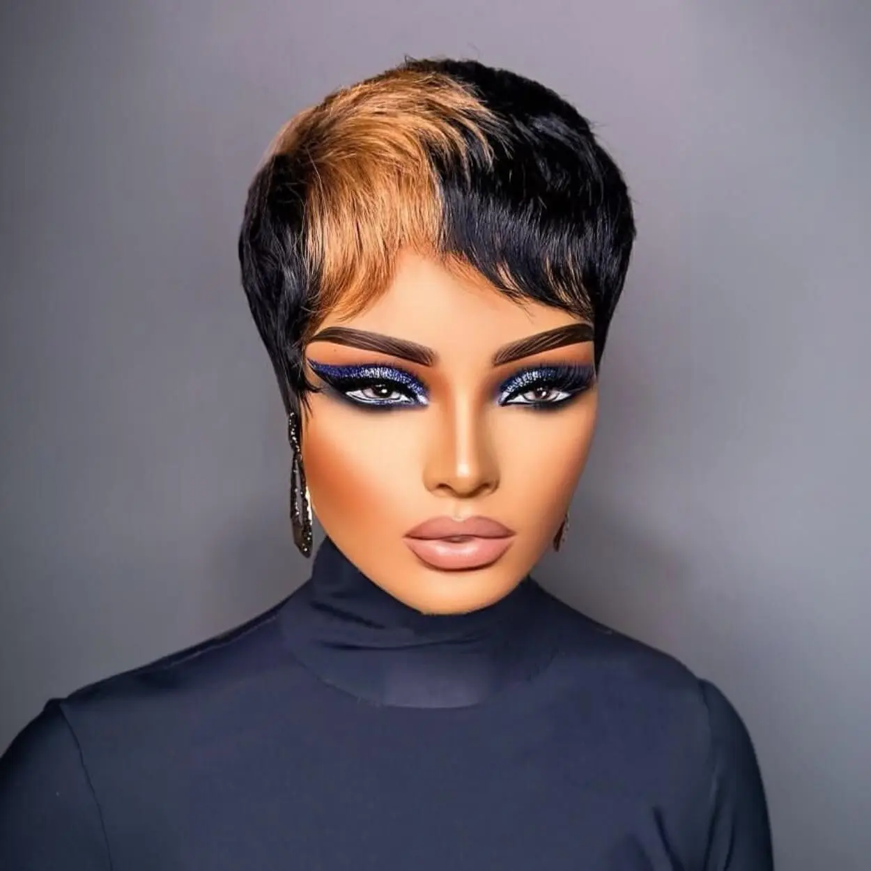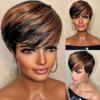 WIGERA Highlight Synthetic Short Straight Pixie Cut Hair Bob Wig Ombre Honey Light Bronw Mix Black Layered Hair Wigs For Woman