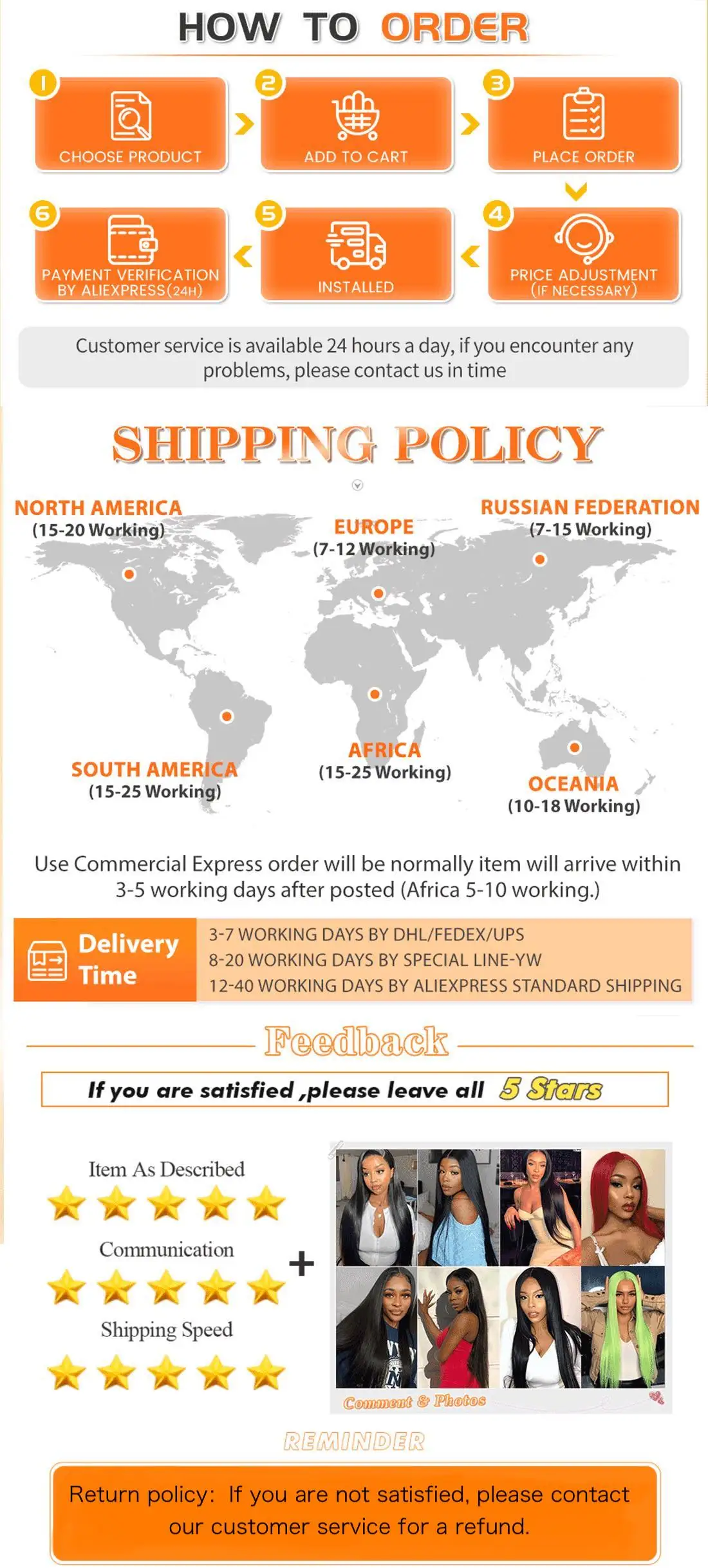 • If you did not receive the product within the guaranteed time( 45 days not including 2-5 day processing) you can request a refund or a reshipment.