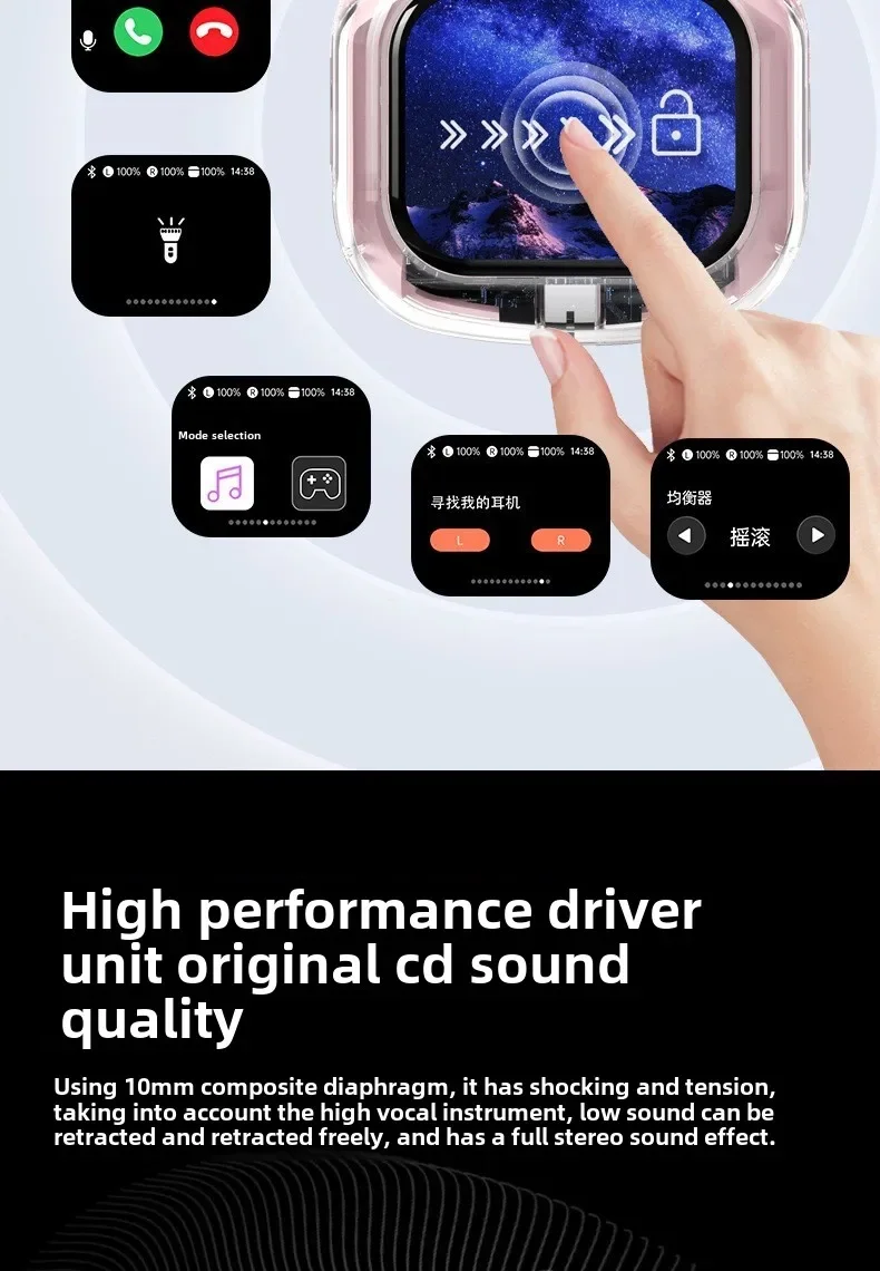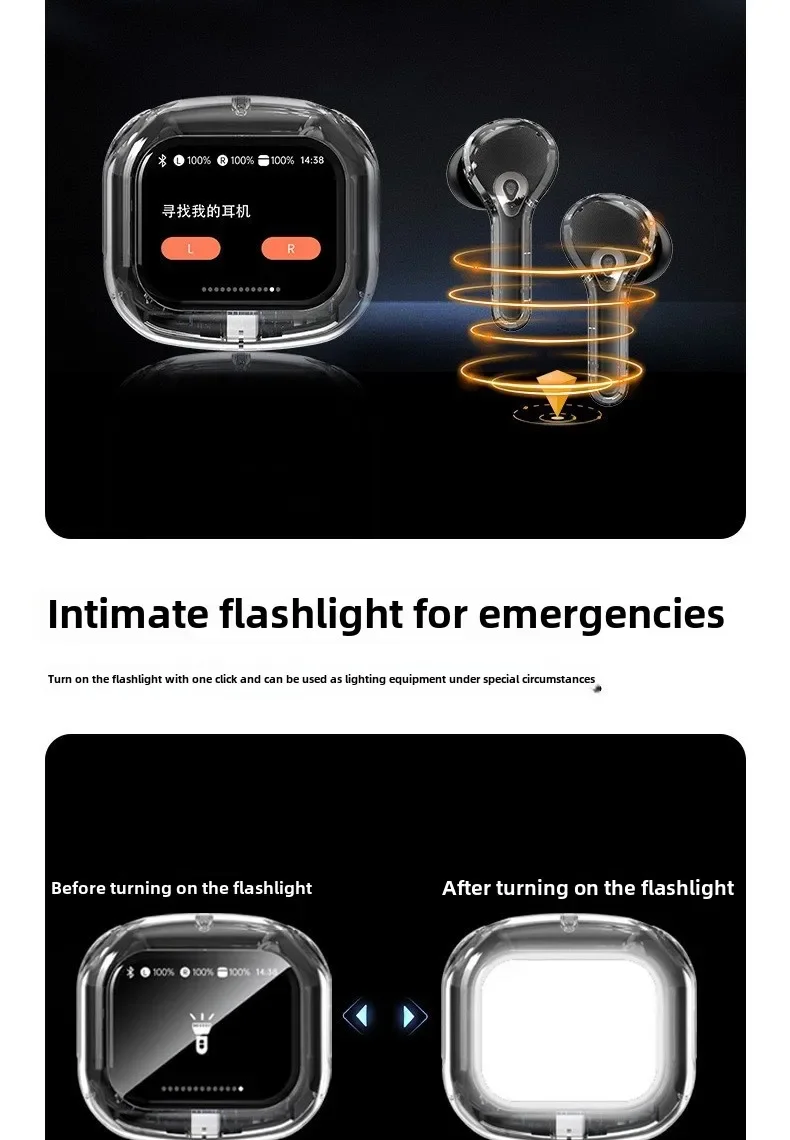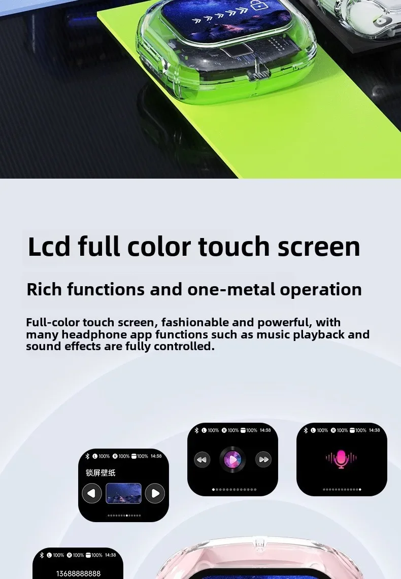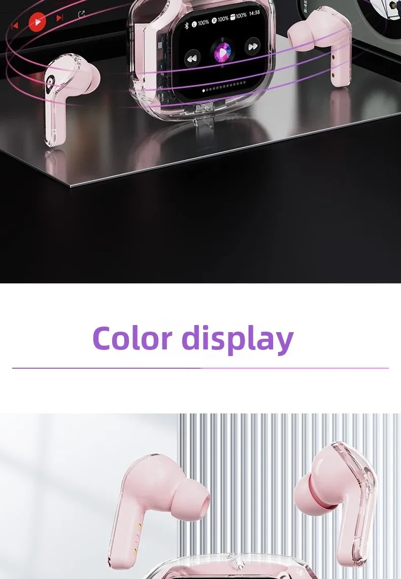 Wireless Bluetooth-compatible Earphones Intelligent Touch Color LCD Screen TWS Earbuds HIFI Noise Reduction Stereo Earphones