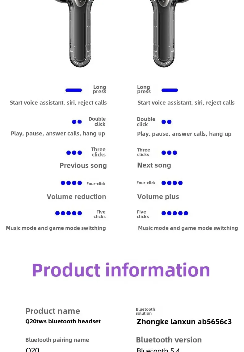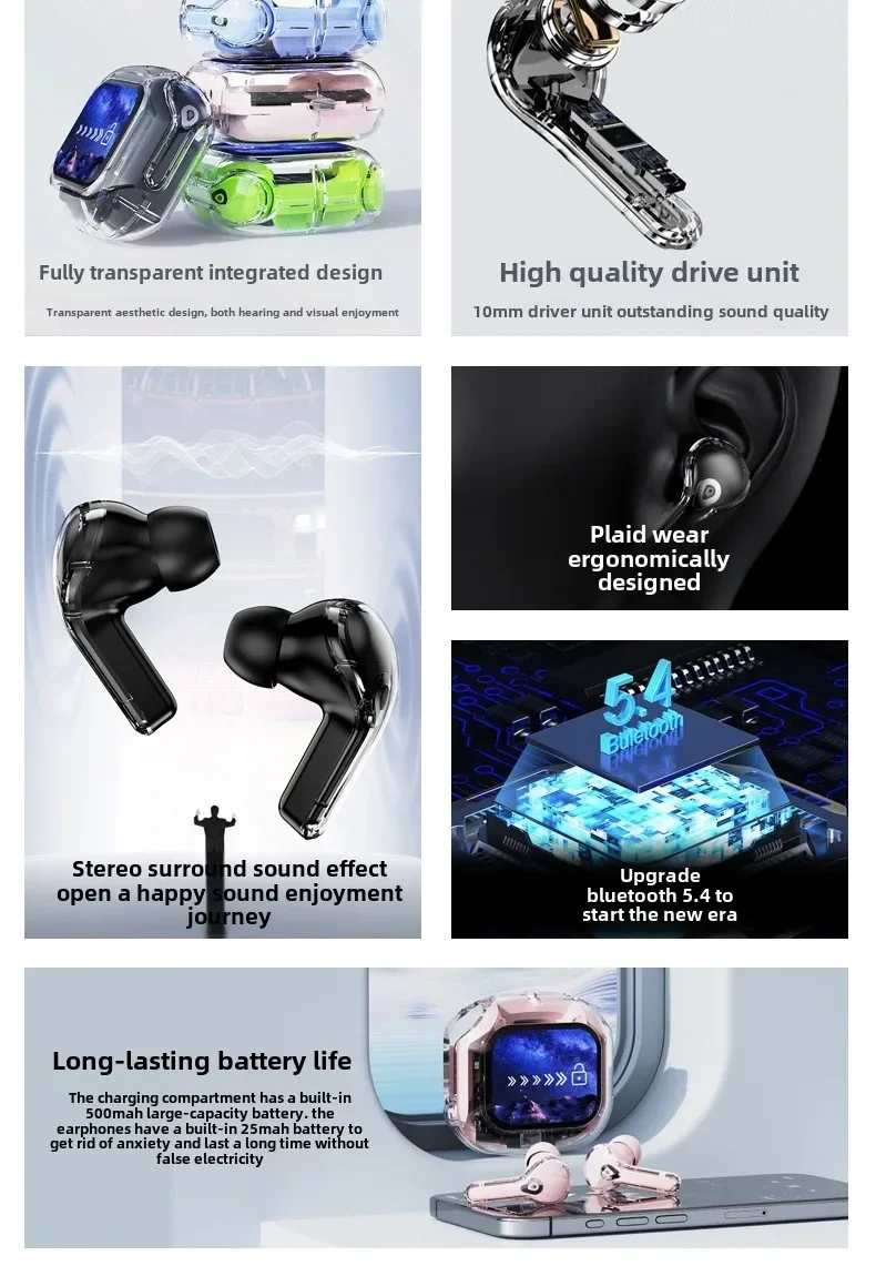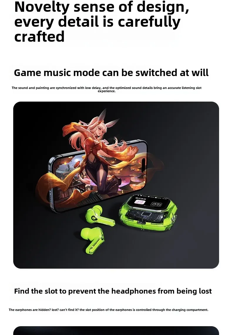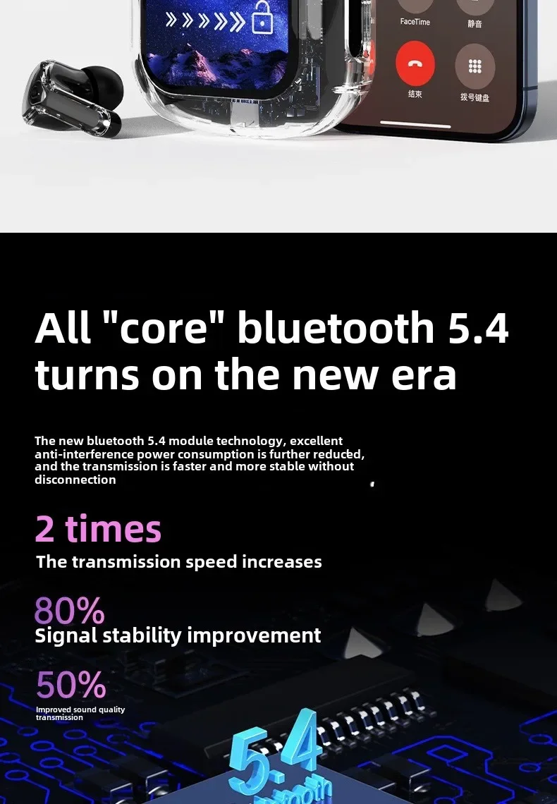 Wireless Bluetooth-compatible Earphones Intelligent Touch Color LCD Screen TWS Earbuds HIFI Noise Reduction Stereo Earphones