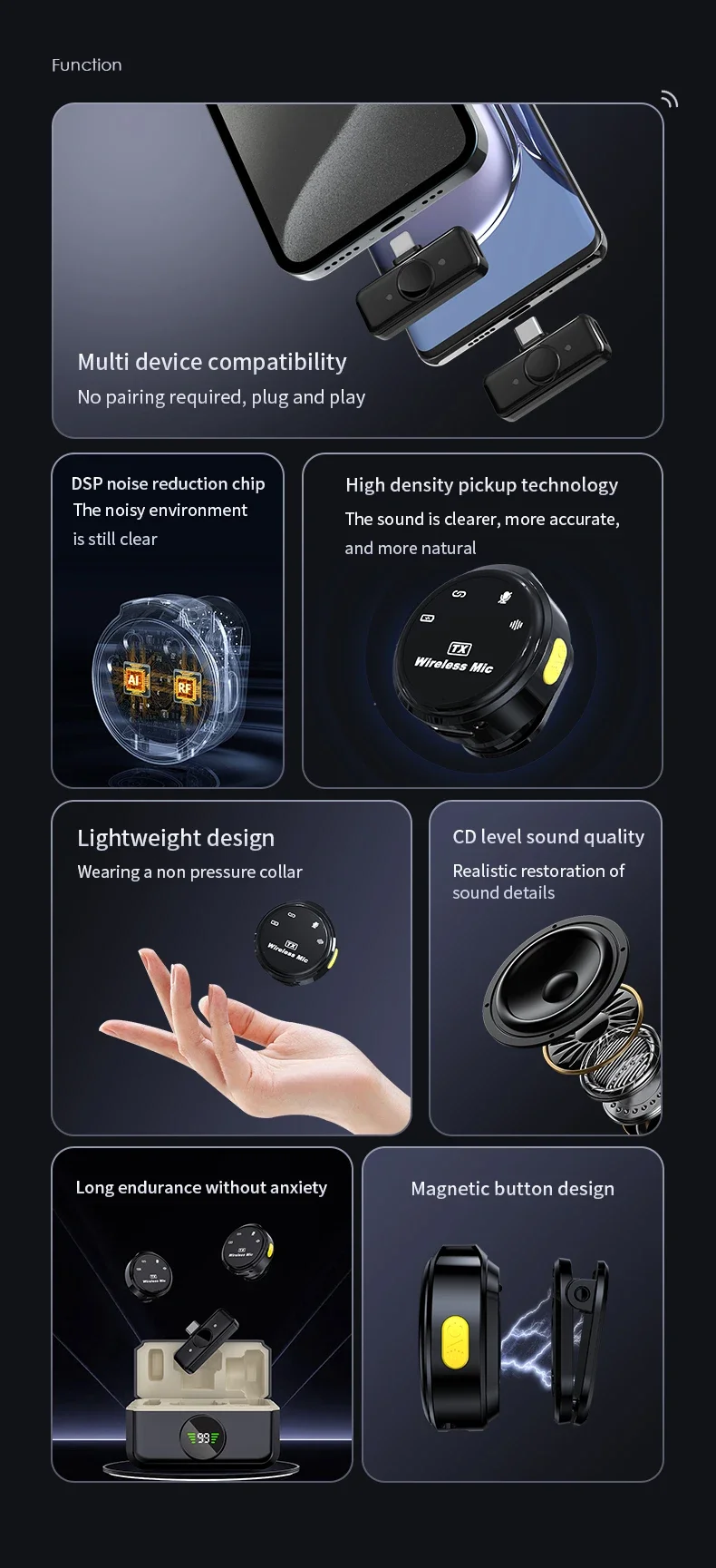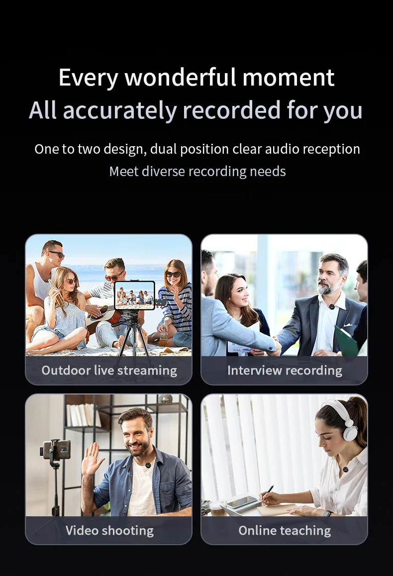 Wireless Lavalier Microphone Dual Omnidirectional Condenser Lavalier Microphone Microphone for iPhone Android Video Recording