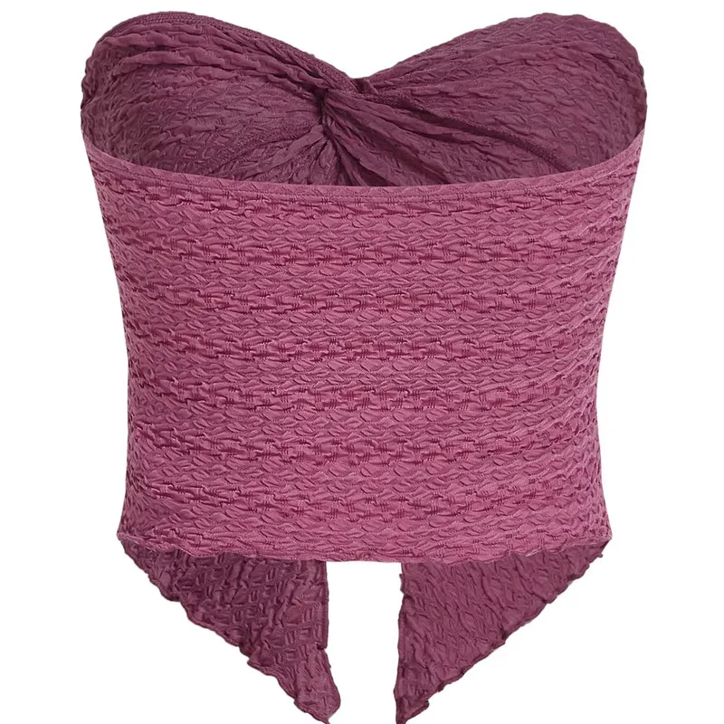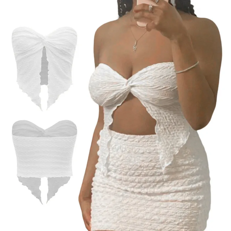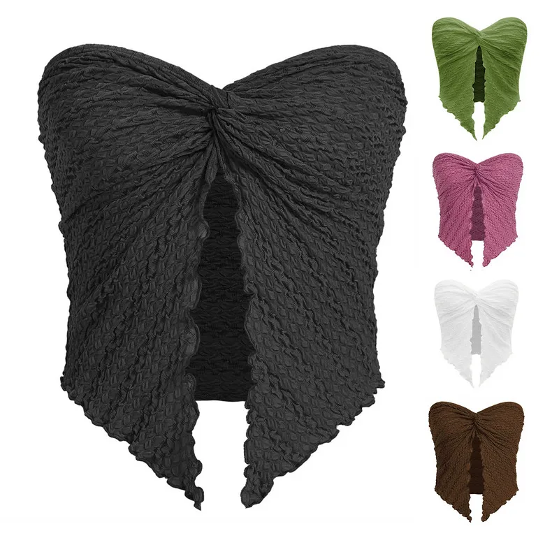 Women Bandeau Crop Tops Corset Summer Clothes 2023 Fashion Sleeveless Solid Color Twist Front Split Tube Tops y2k Streetwear