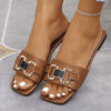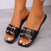 Women Fashion Casual Slippers Summer New Metal Buckle Sandals Square Head Rubber Shoes Women Sexy Slip on Slippers Slides Women