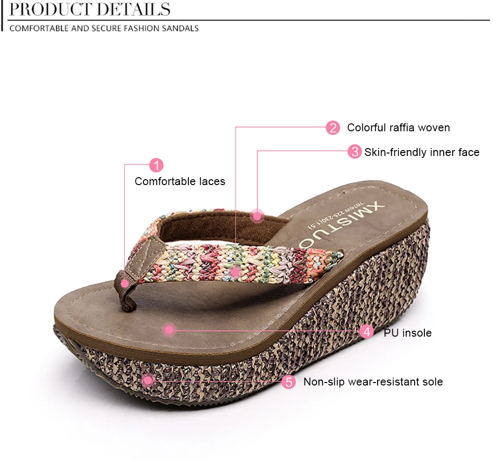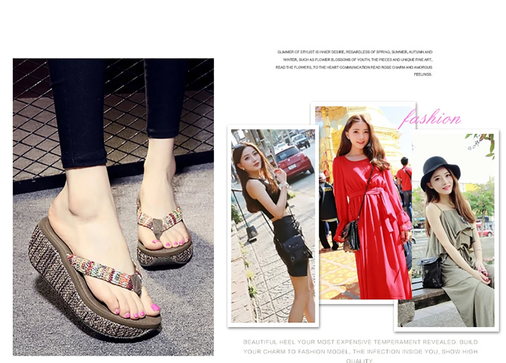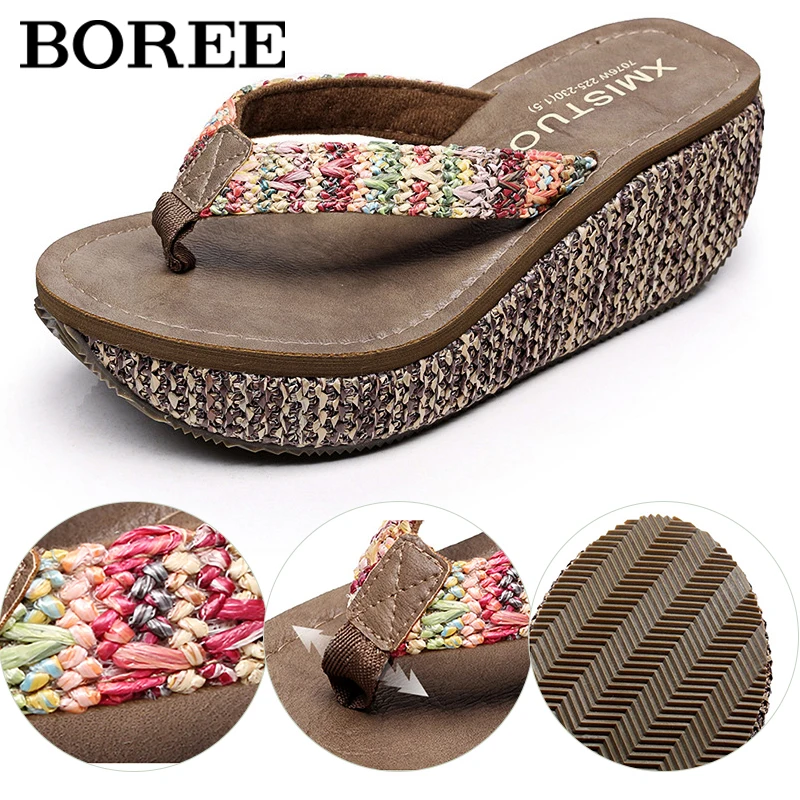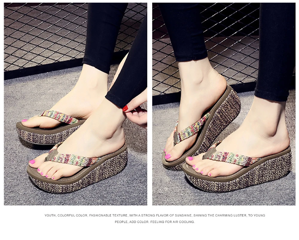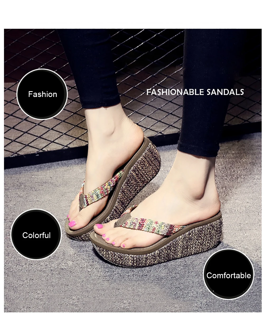 Women Flip Flop Summer Wedges Platform Slippers Outdoor Casual Beach Shoes Woman Heels Anti-slip Wear-resistant Ladies Slippers