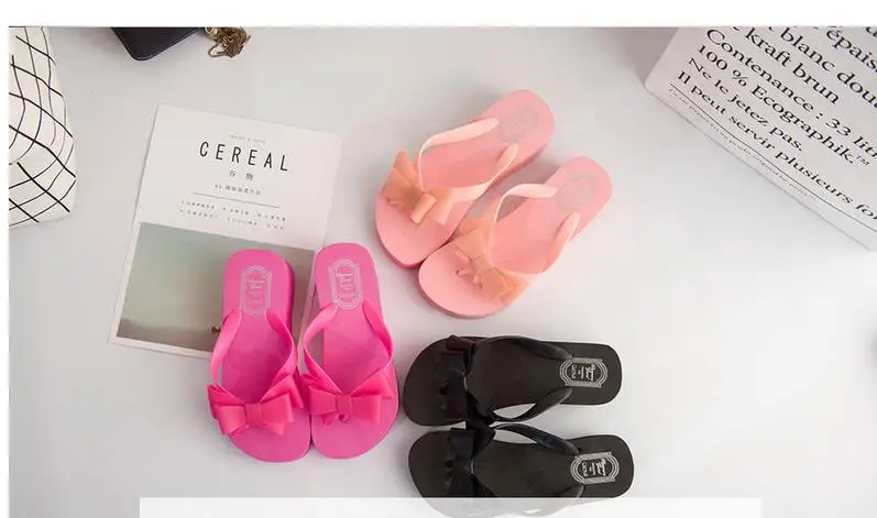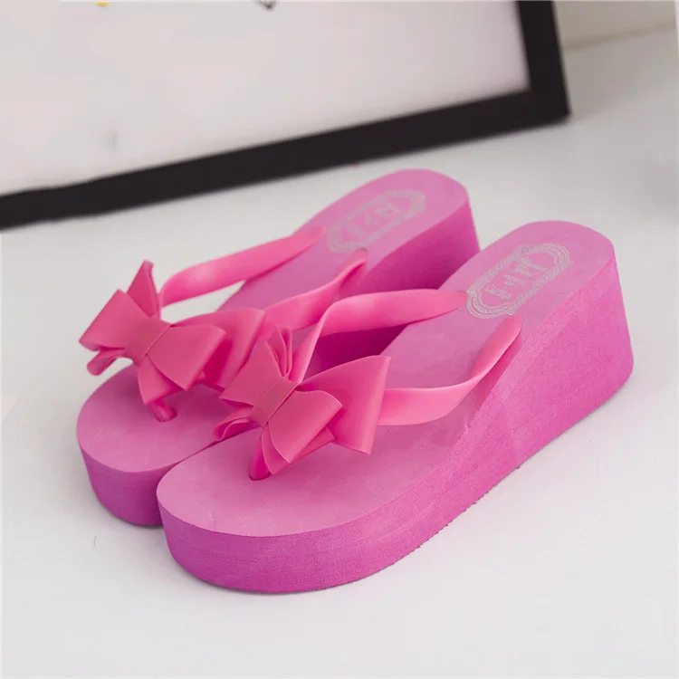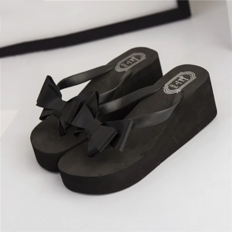 Women Flip Flops Wedges Platform Slippers Beach Thick Heel Sandals Wedge Slippers Wedges Slides Women Summer Lady Bow tie Shoes