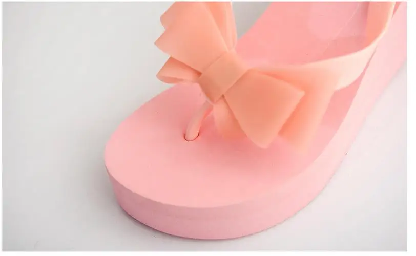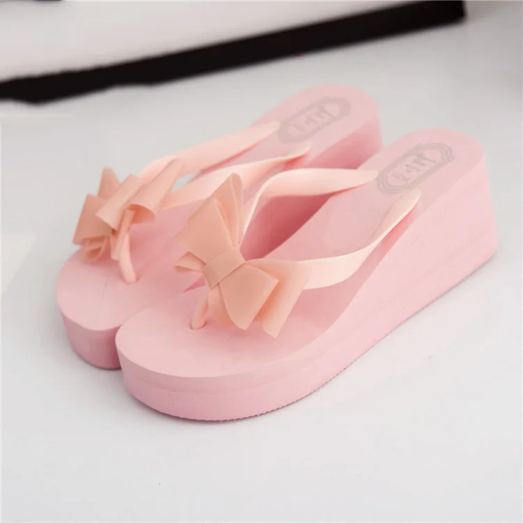 Women Flip Flops Wedges Platform Slippers Beach Thick Heel Sandals Wedge Slippers Wedges Slides Women Summer Lady Bow tie Shoes