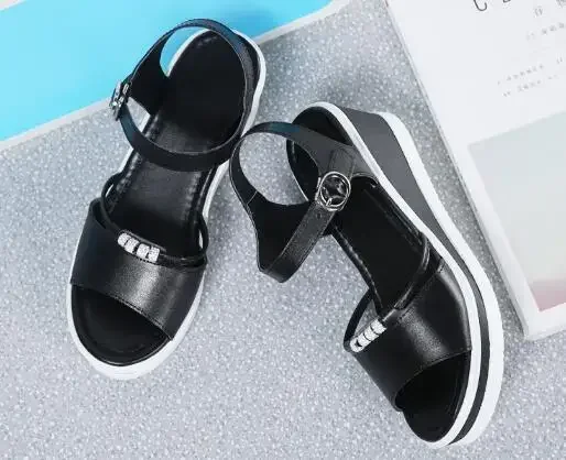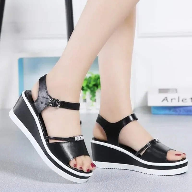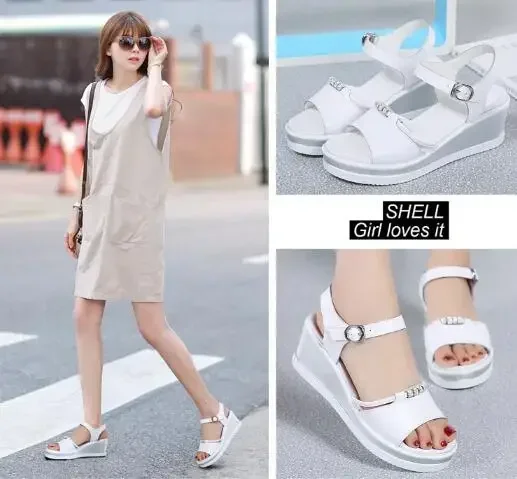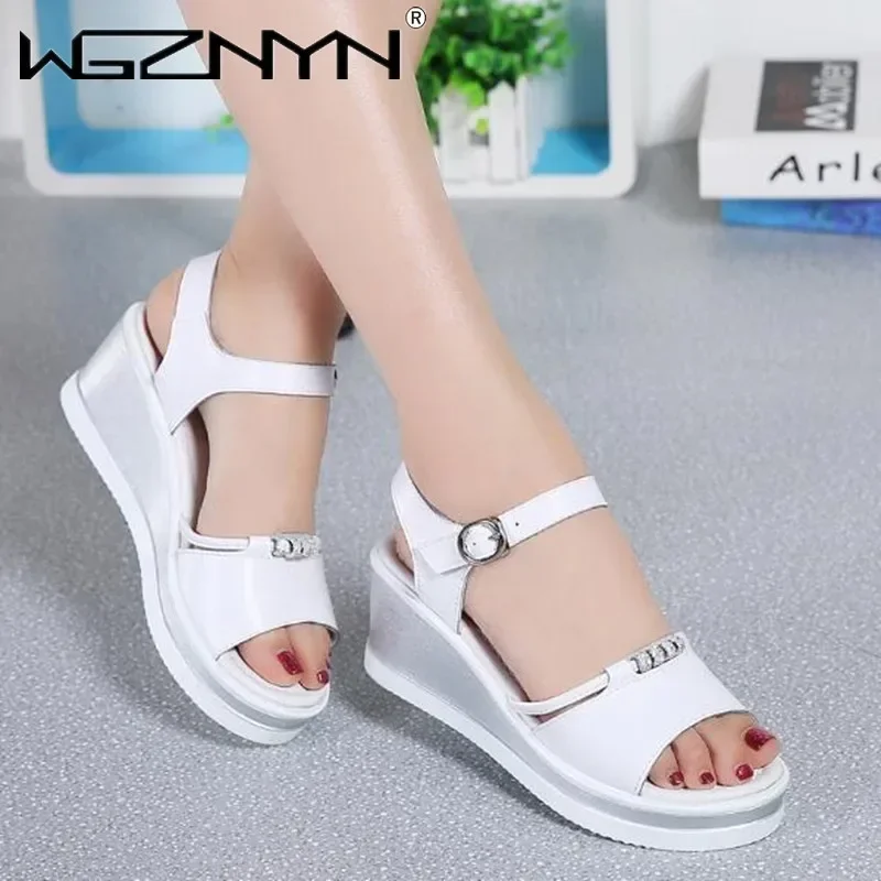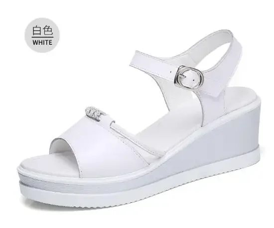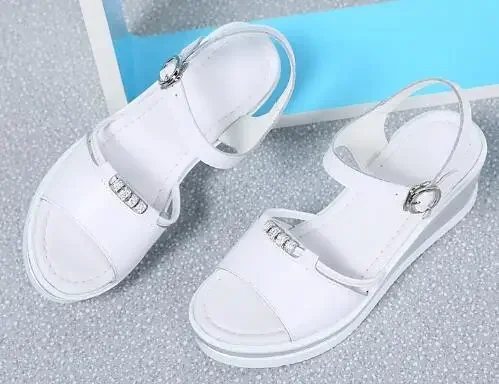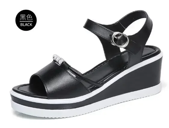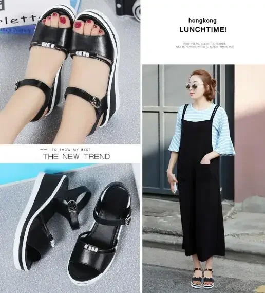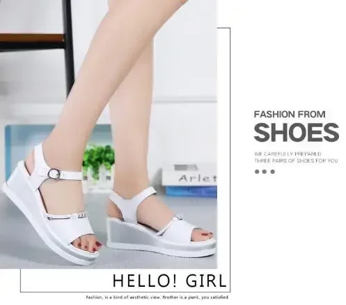 Women Sandals 2025 Summer Fish Mouthcasual Open Toe Shoes Rhinestone Flat Flip Flop High Heels Beach Platform Women’s Sandals