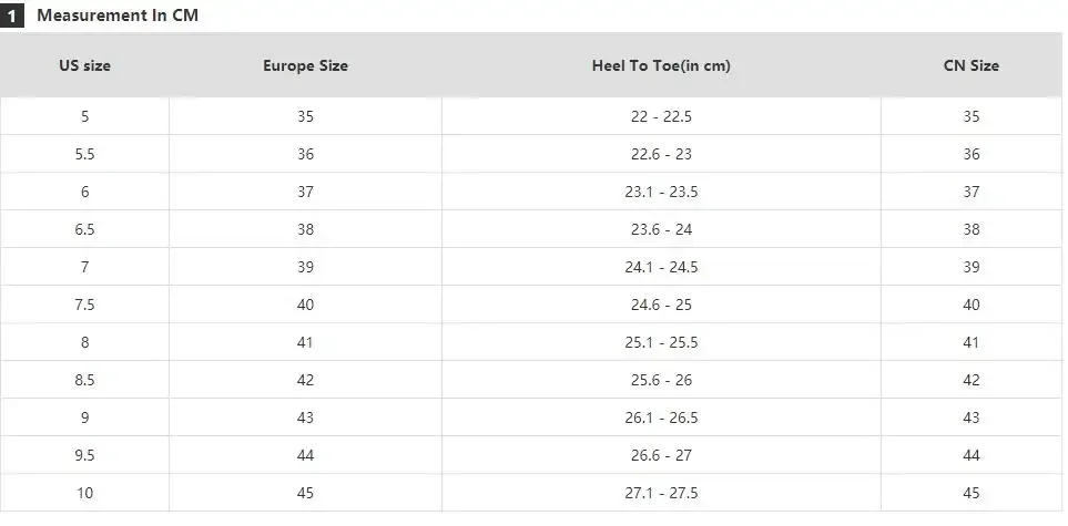 Please ignore the US size tag on the shoe tongue.The tag size sometimes can be larger or smaller than our description size, because Shoes made in China.The shoes USA size may be not fit the standard of your country, please measure your foot length, and chose the right shoes’ size! If you do not know to choose,please tell us your foot length, We will help you choose the correct size! thanks!