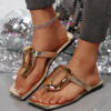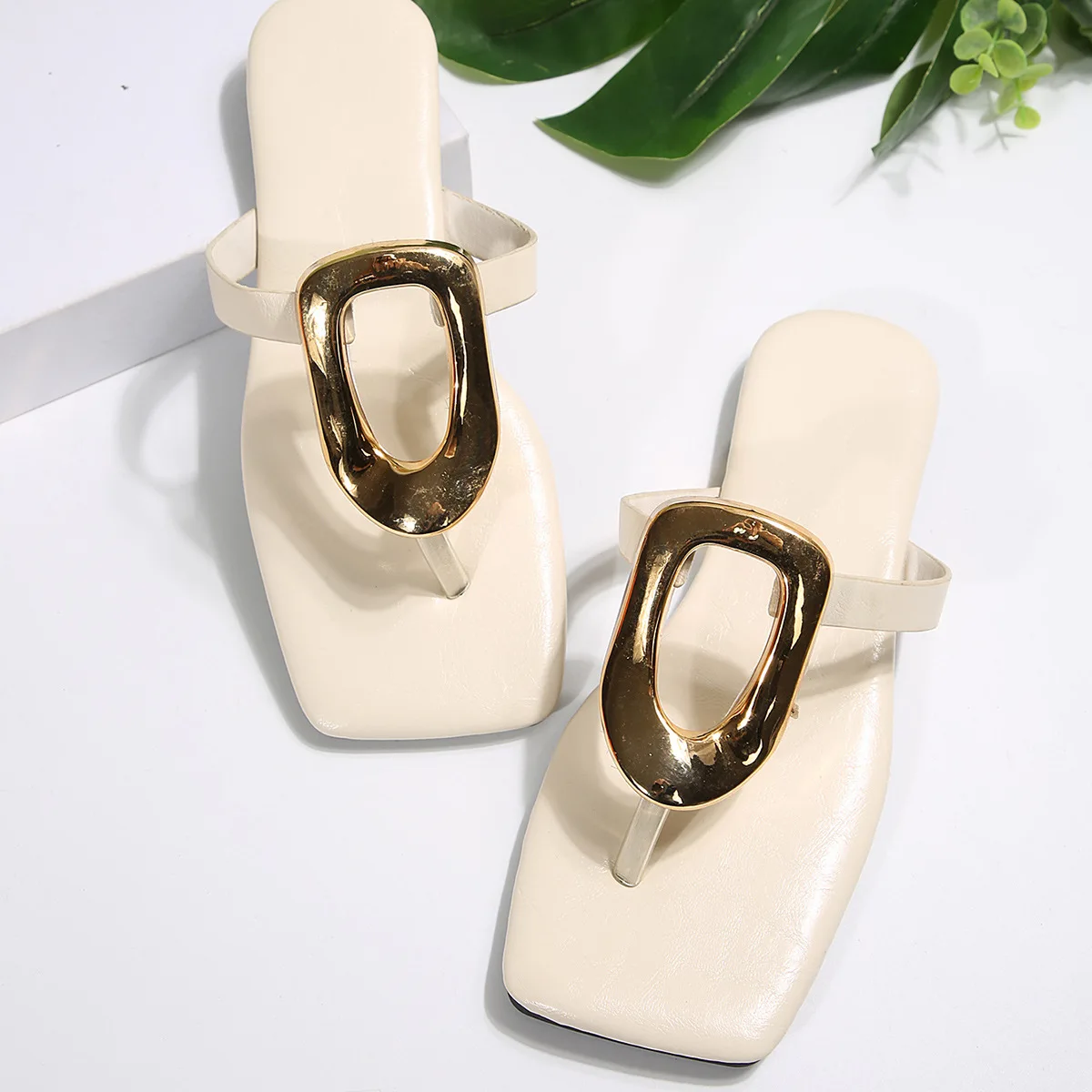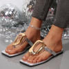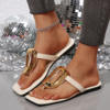 Women Sandals Luxury Flats Sandals Flip Flops 2025 New Summer Beach Slippers Fashion Metal Shoes Slides Women Zapatos De Mujer