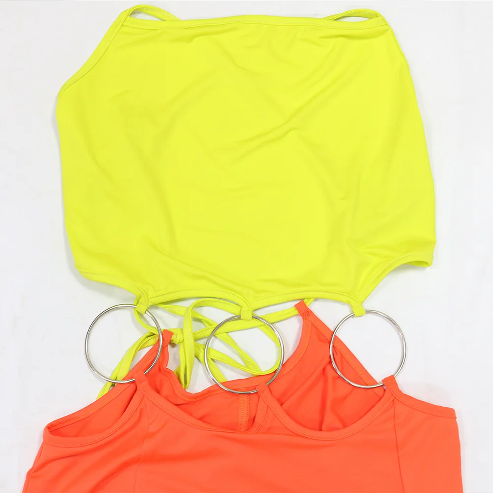 Women Sexy Lace-up Halter High Split Dress Solid Color Hollow Out High Waist Long Sleeveless Dress