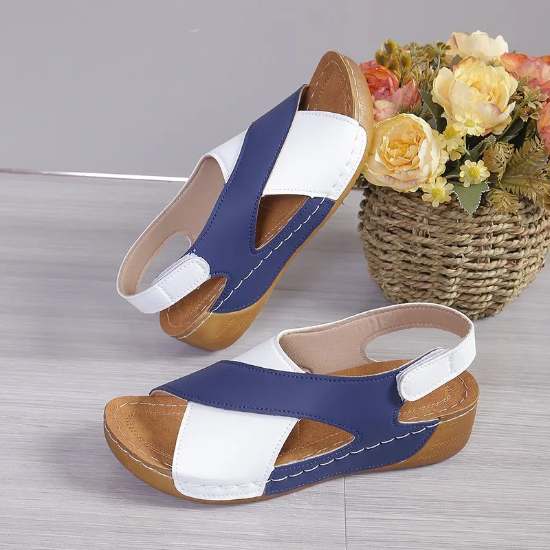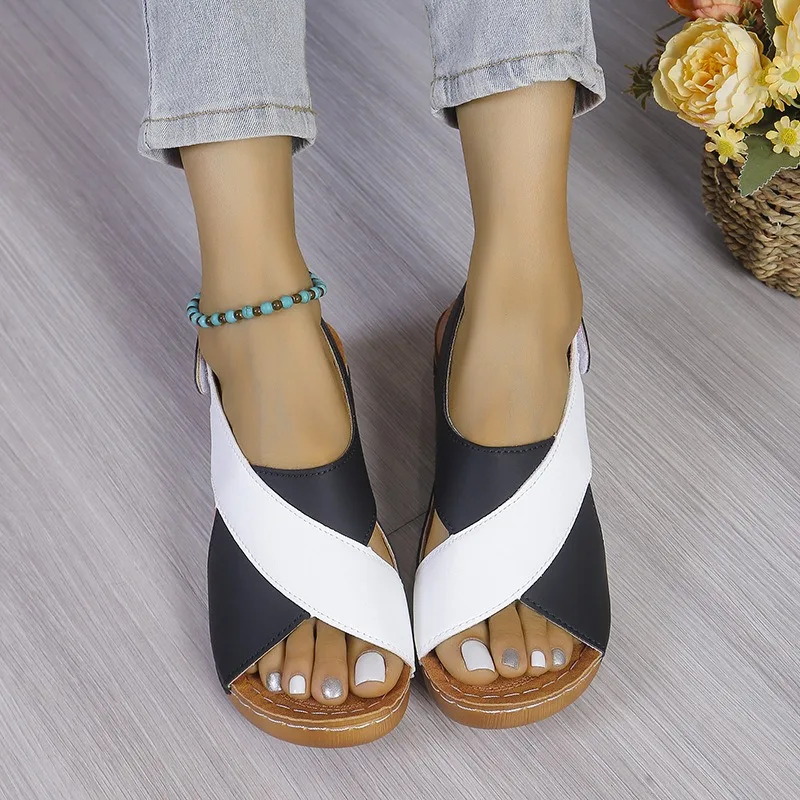 Women’s Contrast Color Wedge Sandals Summer Peep Toe Non Slip Beach Shoes Woman Comfortable Platform Roman Sandalias Mujer 2025