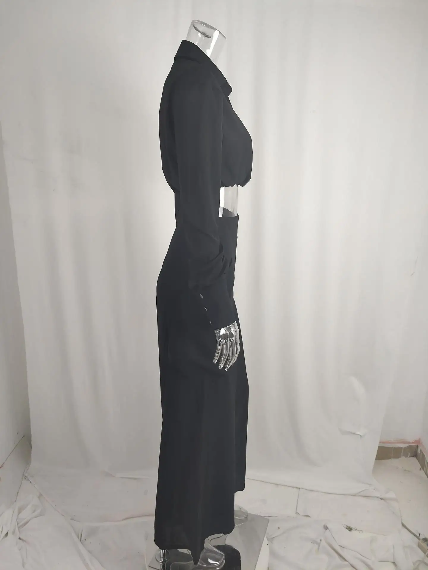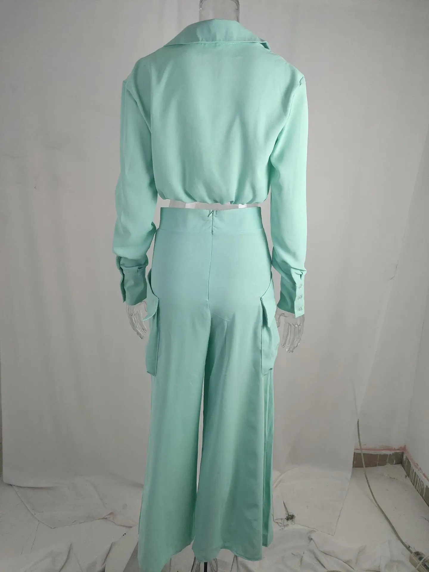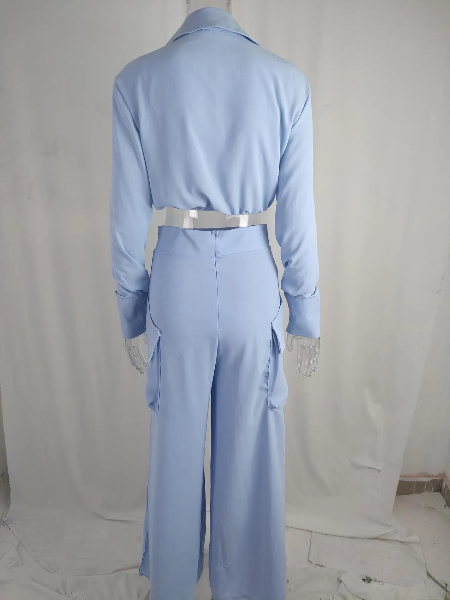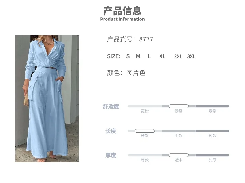 Women’s Elegant Pants Sets Solid Long Sleeve Crop Shirt & High Waist Pants Two Piece Set Casual Work Suit Female V-Neck Top