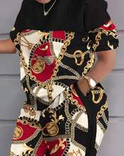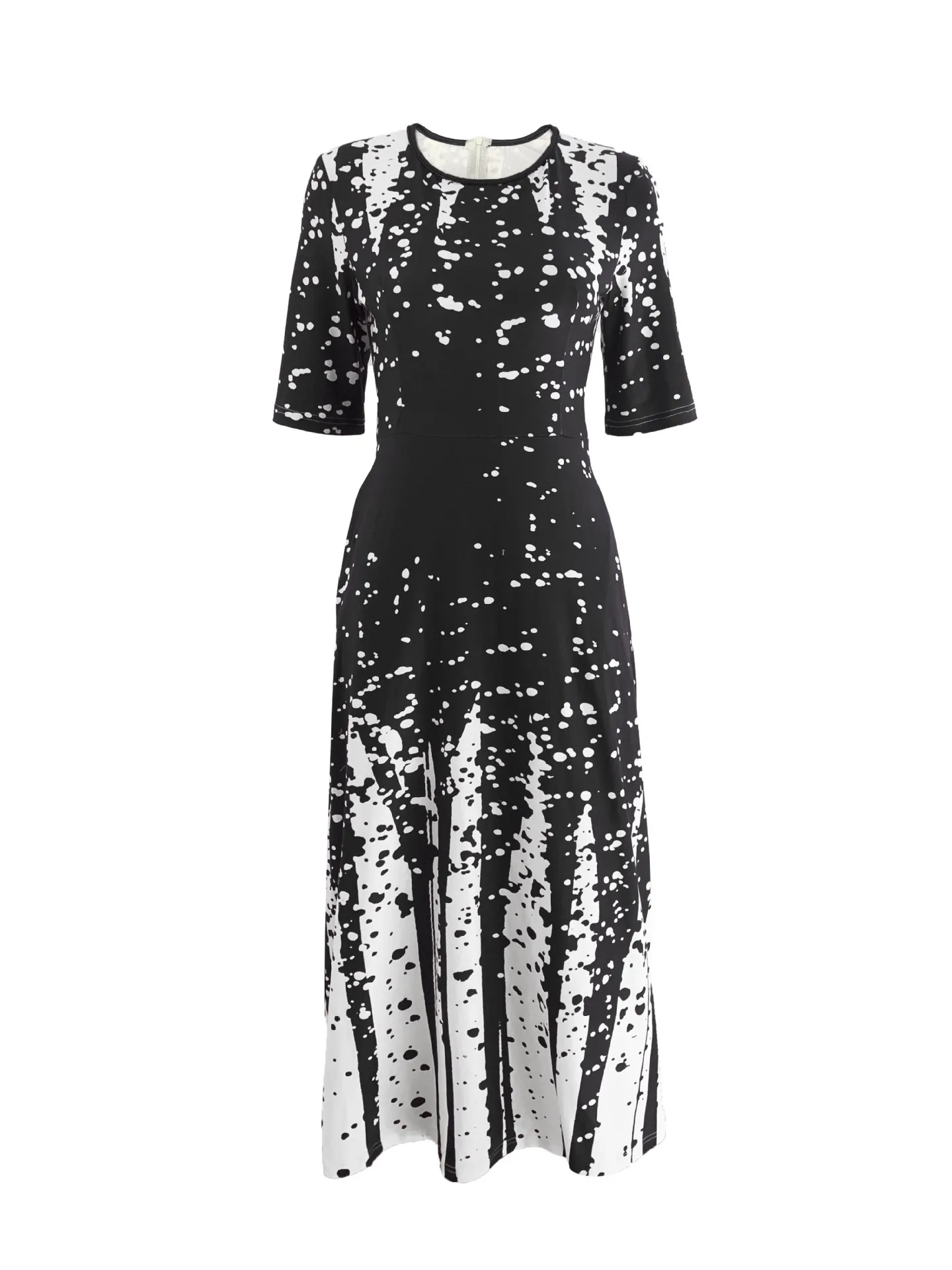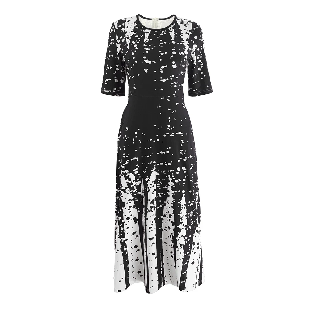 Women’s Elegant Party Long Dresses Loose Round Neck Short Sleeves Retro Printed Casual Long Dress 2024