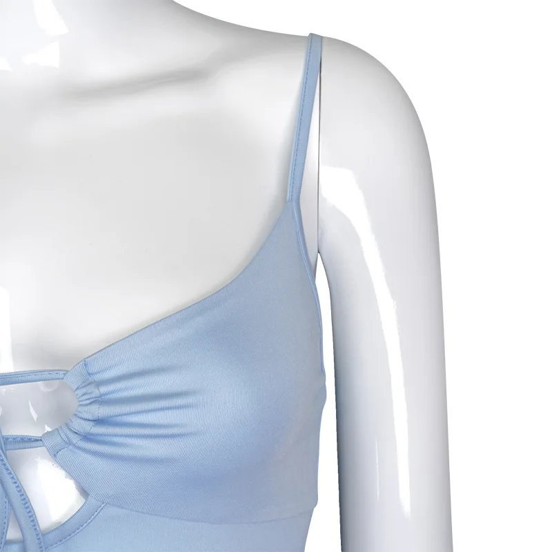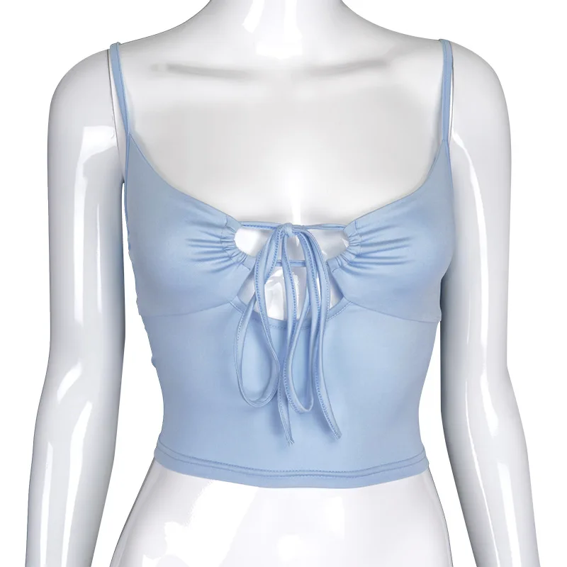 Women’s Fashion Solid Color Camisole Summer Sexy Pleated Hollow Bandage Exposed Navel Top Y2k Crop Top