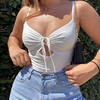 Women’s Fashion Solid Color Camisole Summer Sexy Pleated Hollow Bandage Exposed Navel Top Y2k Crop Top