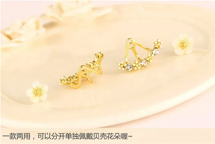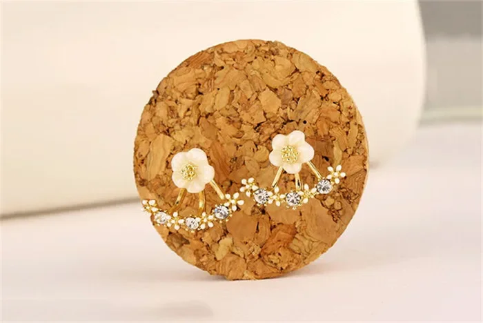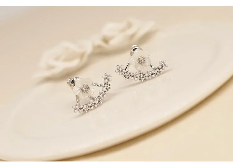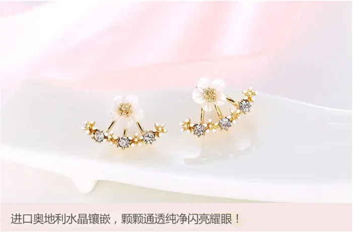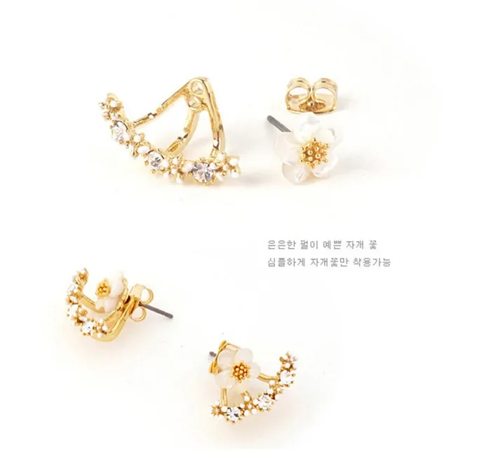 Women’s Flower Earrings Zircon Ear Jacket Korean Style Copper Ear Studs Earrings Orecchini Jewelry Pendientes Aretes De Mujer