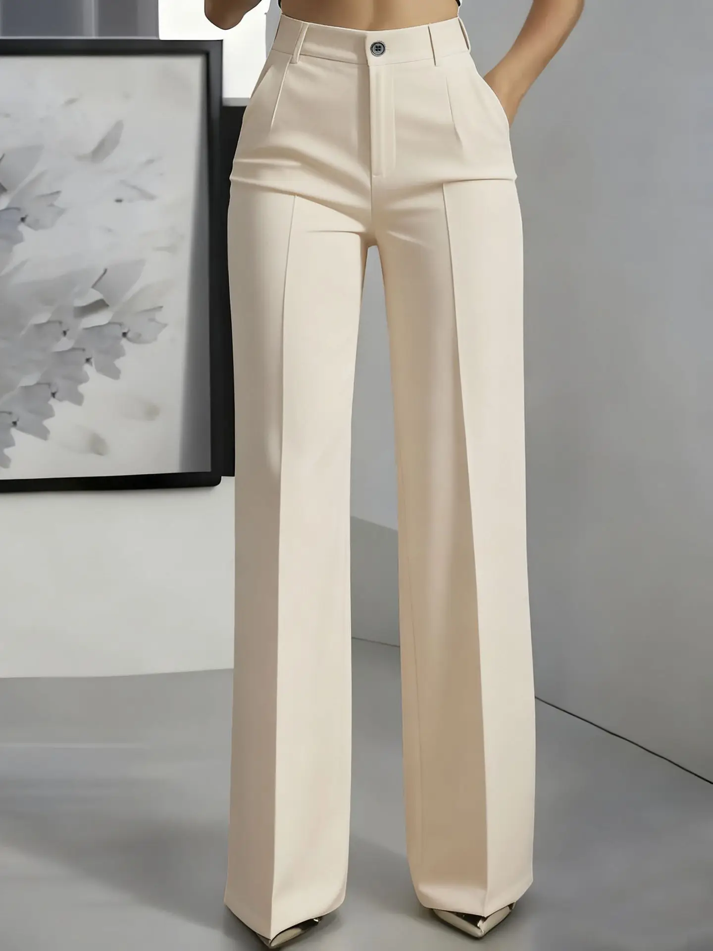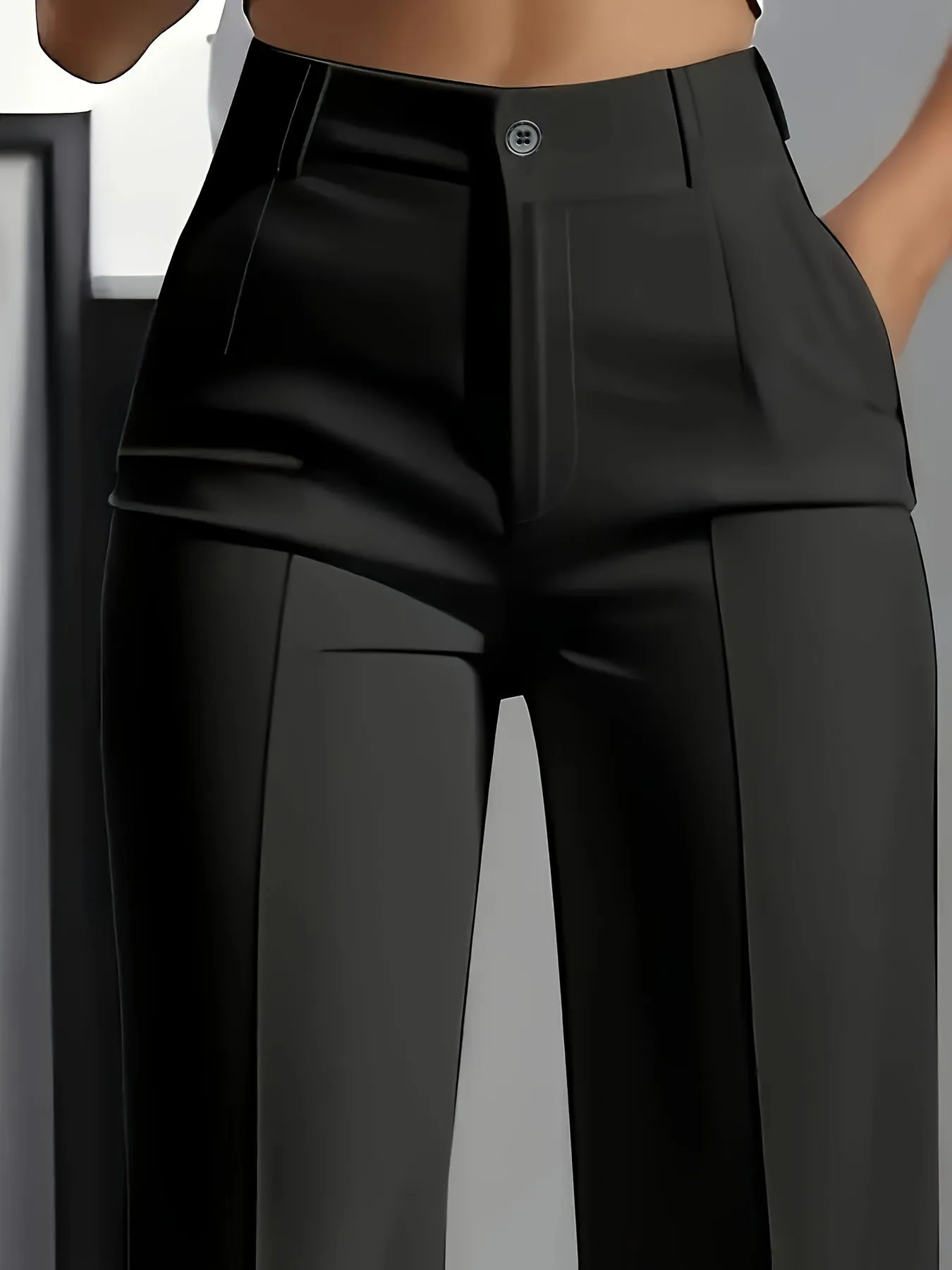 Women’s High Waist Dress Pants – Flowy Straight Leg Trousers, Minimalist Office Tailored Pants