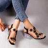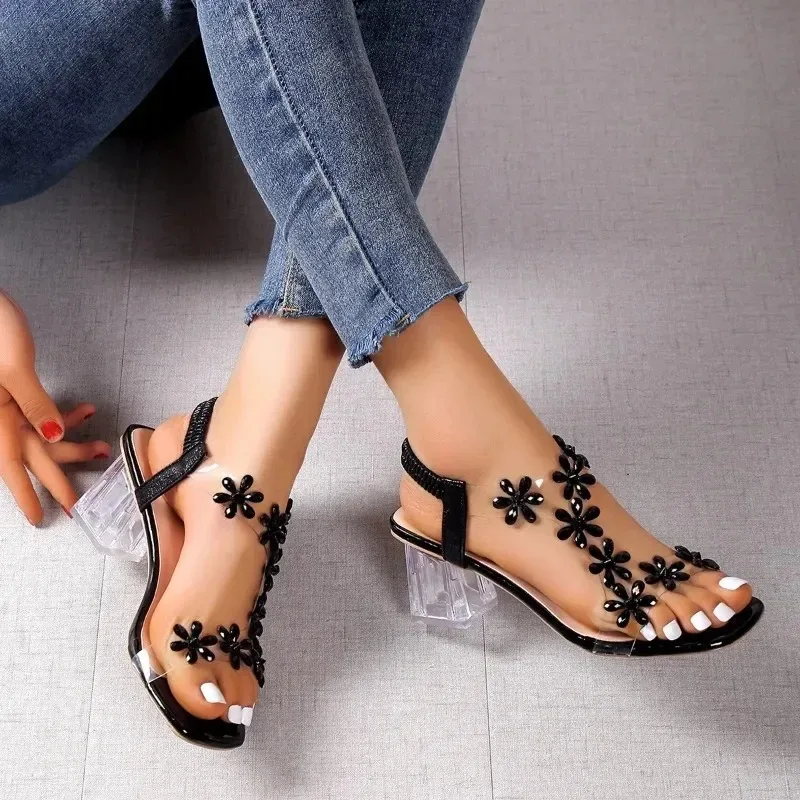Women‘s Sandals PVC Crystal Flower Shoes for Women Decoration Chunky Heel Sandals Ladies Back Strap Fashion Shoes Female