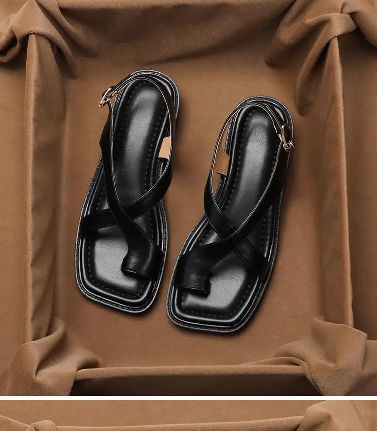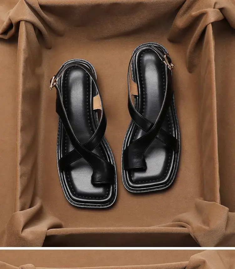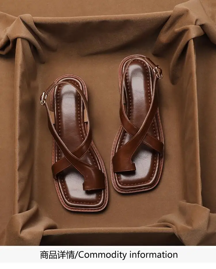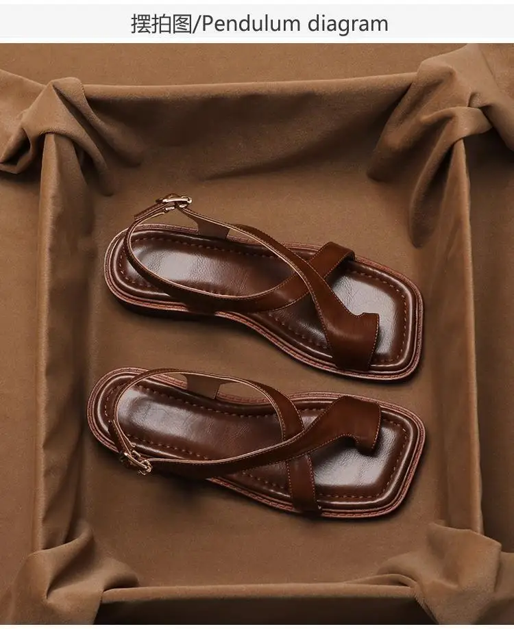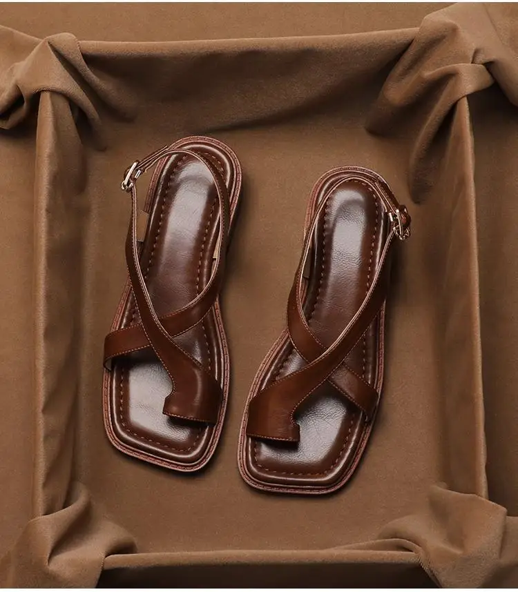 Women’s Sandals Retro French Style Clip Toe Square Toe Buckle 2026 Sandals Comfortable Soft Sole Simple Versatile Sandalias