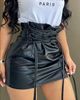 Women’s Short Skirt 2024 New Mini Fashion Short Skirt Lace up Sexy High Waist Wrap Hip Pu Leather Lace up Pleated Mini Skirt