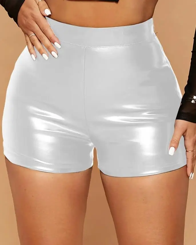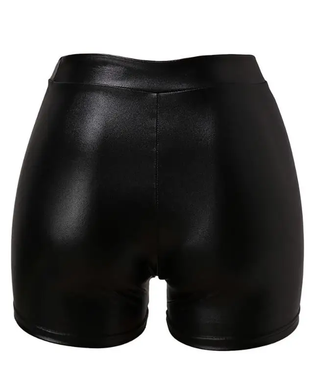 Women’s Shorts 2023 Summer Fashion Sexy Buckled High Waist Plain Skinny Daily Above Knee Pu Leather Shorts Above Knee